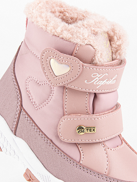 Зимние ботинки с мембраной для девочки – надежная защита от холода и влаги. Подошва, состоящая из материалов ЭВА и ТЭПа, обеспечивает легкость и, при этом, предотвращает скольжение. Модель оснащена теплой стелькой с фольгой, которая уберегает от охлаждения и обеспечивает сохранение тепла в течение длительного времени. Купить мембранные ботинки Kapika легко- необходимо всего лишь оформить заказ в фирменном интернет магазине.