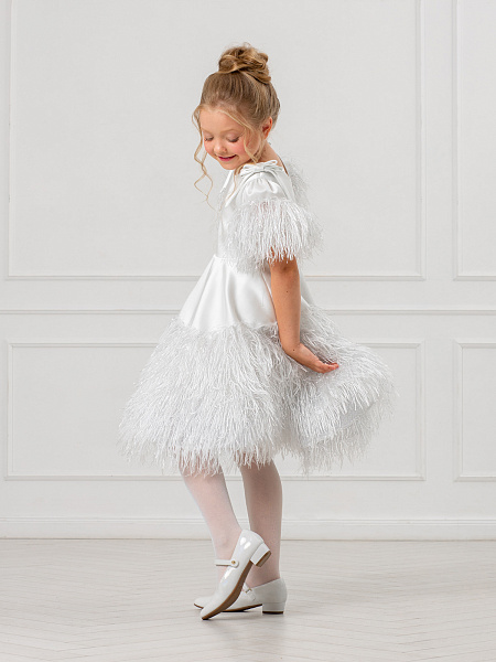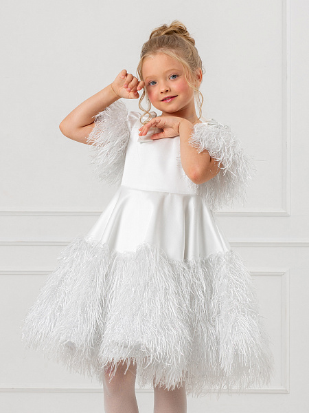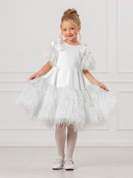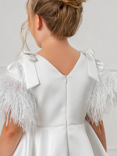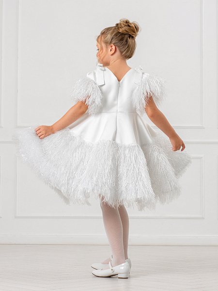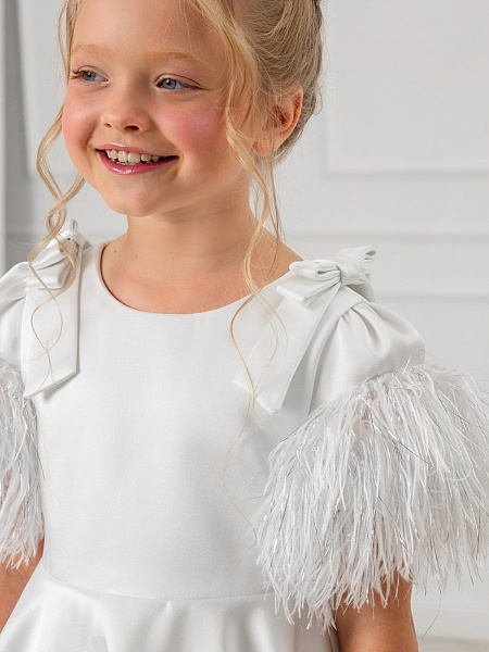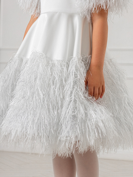 Элегантное белое платье для девочки, созданное из смеси вискозы и полиэстера, станет настоящим украшением любого праздника. Рукава-фонарики и юбка украшены изысканными перьями и блестящим люрексом, что придаёт образу особую торжественность. Пышная юбка-полусолнце подчёркивает изящество силуэта, а банты из лент на плечах добавляют романтичности. Аккуратная молния на спине обеспечивает удобство при надевании, а подкладка из 100% хлопка гарантирует комфорт в течение всего дня.