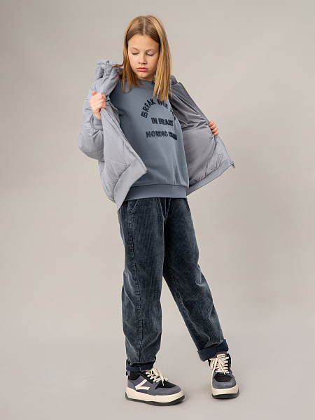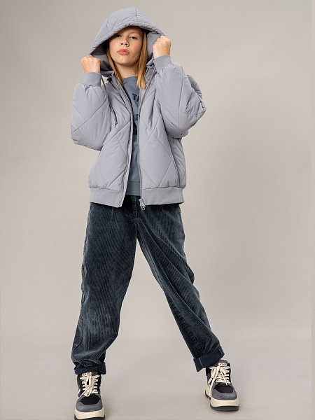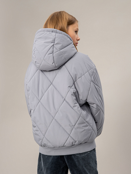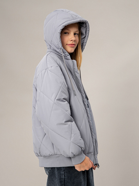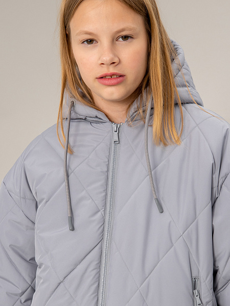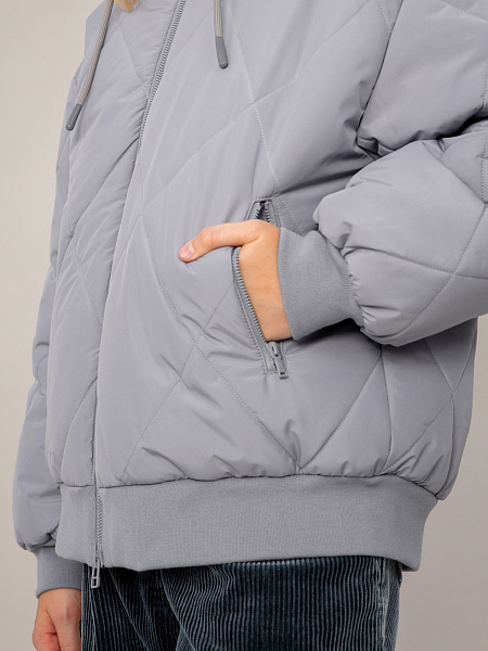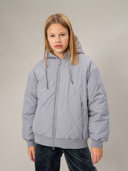 Демисезонная куртка-бомбер для девочек в сером цвете — удобная и современная верхняя одежда. Модель выполнена в актуальном оверсайз-силуэте с характерной ромбовидной стёжкой. Куртка изготовлена из прочной ткани с мембраной 5000/5000, которая надёжно защищает от влаги и позволяет коже дышать. Утеплитель из синтепона плотностью 200 г/м² обеспечивает комфортную температуру в прохладную погоду. Практичная конструкция включает капюшон на шнурке для дополнительной защиты от ветра. Застёжка-молния обеспечивает удобство использования, а два кармана на молнии добавляют функциональности. Эластичные рибаны по низу изделия, манжетам и воротнику создают комфортную посадку и защищают от проникновения холодного воздуха. Свободный крой не стесняет движений. Бомбер отлично подходит как для повседневной носки, так и для прогулок, сочетая в себе комфорт, практичность и модный внешний вид.