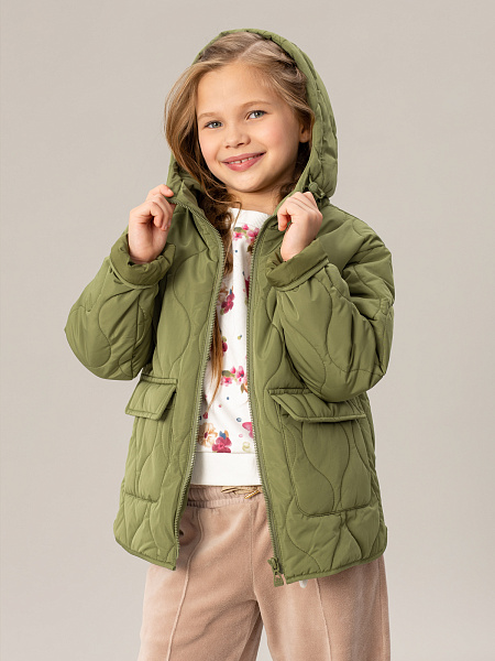 Стильная стеганая куртка в зеленом цвете. Благодаря удобному крою и практичным решениям эта модель станет незаменимым элементом гардероба. Высокотехнологичная ткань с мембраной 5000/5000 гарантирует отличную защиту от влаги и позволяет коже дышать, а синтепон плотностью 160 г/м² обеспечивает оптимальный баланс тепла и легкости изделия. Куртка имеет удобный капюшон для дополнительной защиты от непогоды и два функциональных накладных кармана с клапанами. Эта куртка станет отличным выбором для активных девочек, которые ценят комфорт и практичность. Модель прекрасно подойдёт как для детского сада, так и для прогулок на свежем воздухе.