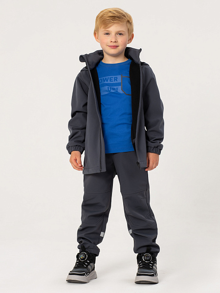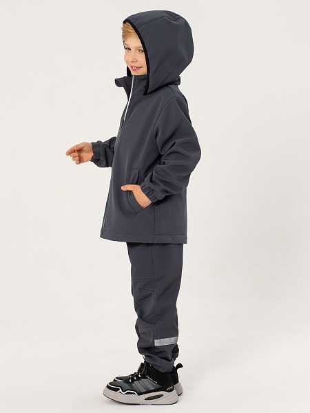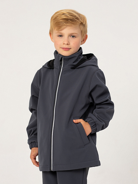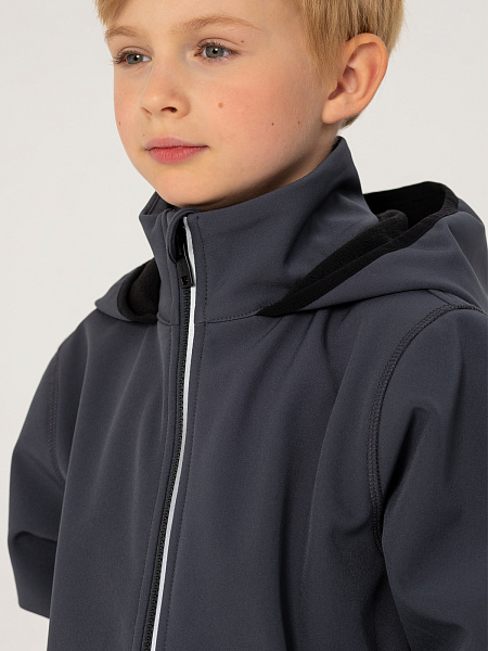 Серая куртка для мальчиков из материала софтшелл с водонеппроницаемой мембраной 5000мм/5000г/м2/24ч— идеальный выбор для активного зимнего сезона. Модель застегивается на центральную молнию. Воротник-стойка дополнительно защищает от холода. Практичный капюшон надёжно защищает от непогоды и ветра. Эластичные манжеты на рукавах с удобными резинками обеспечивают плотное прилегание и сохраняют тепло. Эта куртка сочетает в себе стиль, комфорт и функциональность, делая вашего ребёнка готовым к активным зимним приключениям.