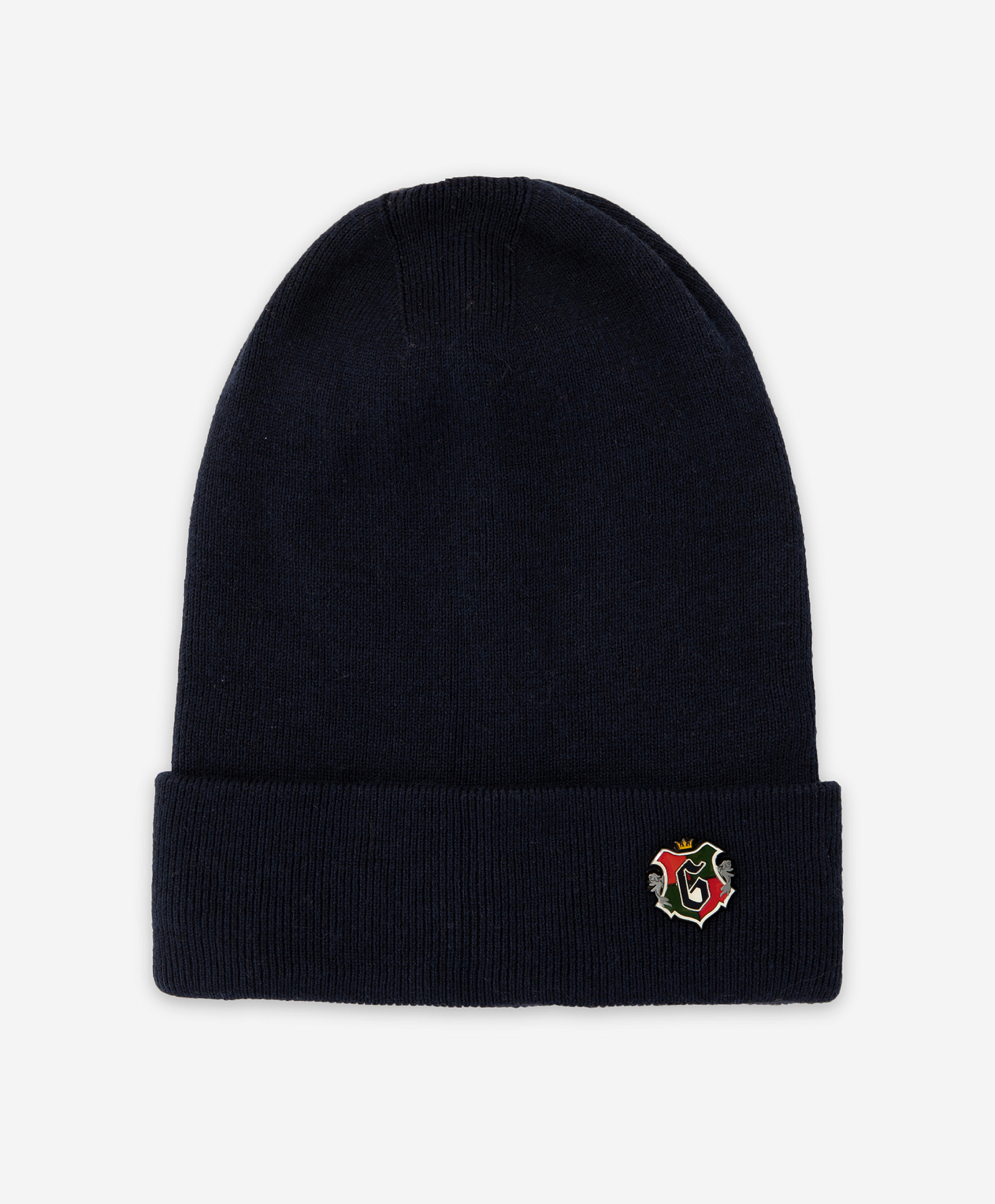 Синяя шапка с широким отворотом из пряжи с содержанием шерсти, сделает осенне-зимний образ девочки полноценным и завершенным.
