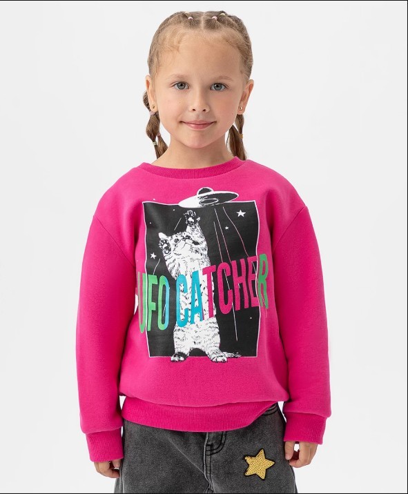 Свитшот из плотного хлопкового трикотажа и флиса в ярком дизайне подарит комфорт, свободу движения и отличное настроение. Особенности модели: спущенные рукава, манжеты на рукавах и по низу изделия, большой графический принт.