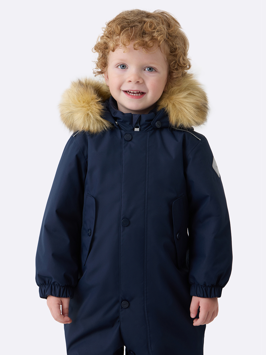 Комбинезон утеплен современным материалом Fellex, который сохраняет тепло даже при сильных морозах. Малыш сможет комфортно кататься на санках или строить снежные крепости.