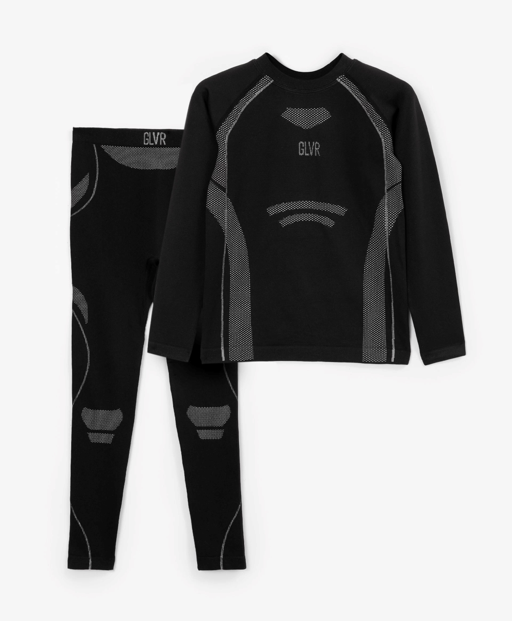 Комплект термобелья - важный функциональный атрибут гардероба мальчика для прогулок и активного отдыха в холодную погоду. Комплект в черном цвете выполнен из специального эластичного трикотажного полотна, которое отводит влагу с поверхности тела, сохраняя тепло и предотвращая переохлаждение. Вывязанный рисунок, в том числе шрифтовой декор на передней части лонгслива и поясе брюк, придает термобелью драйв и динамику спортивного стиля, мотивируя на движение!