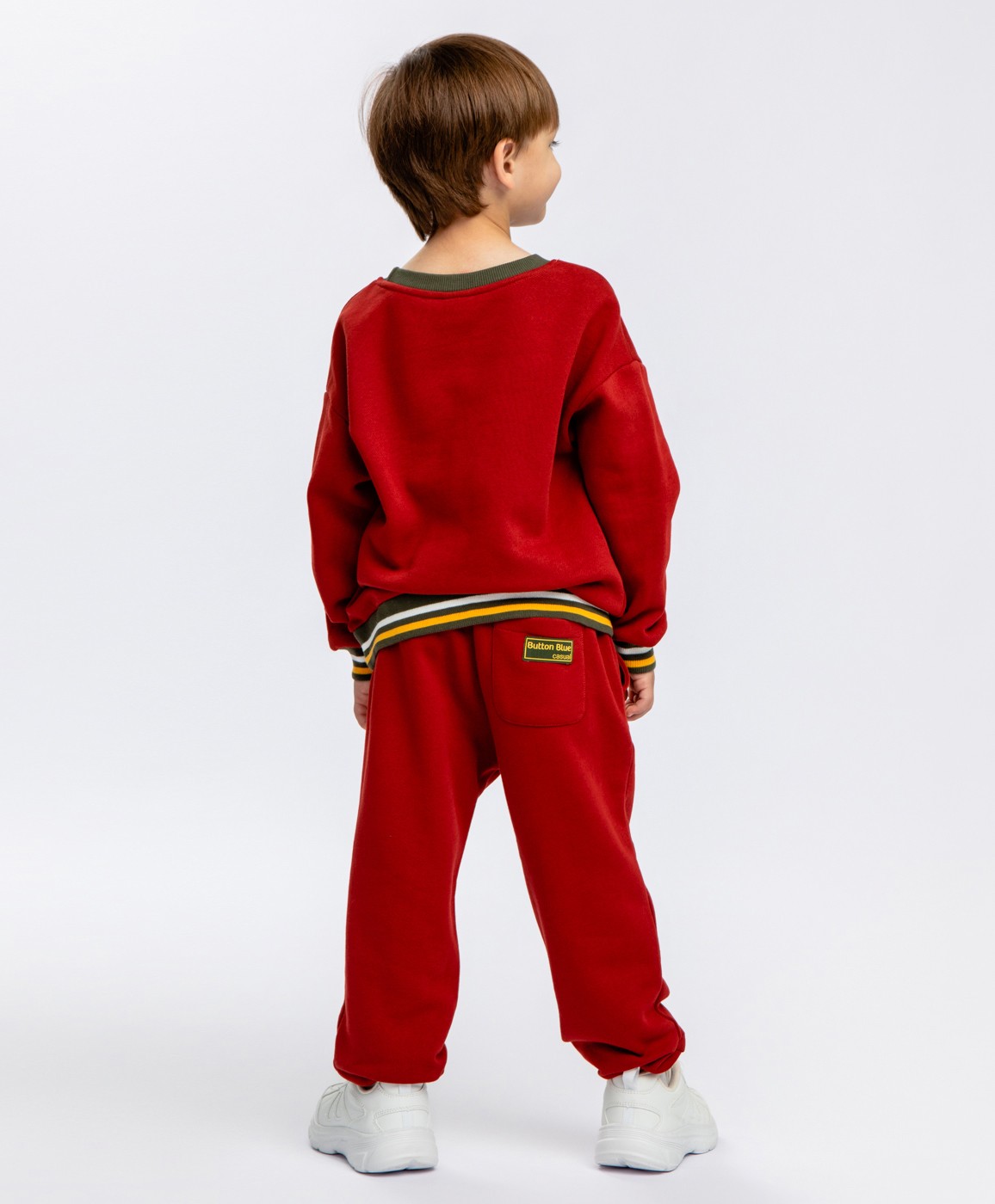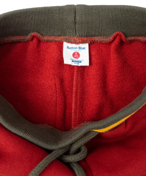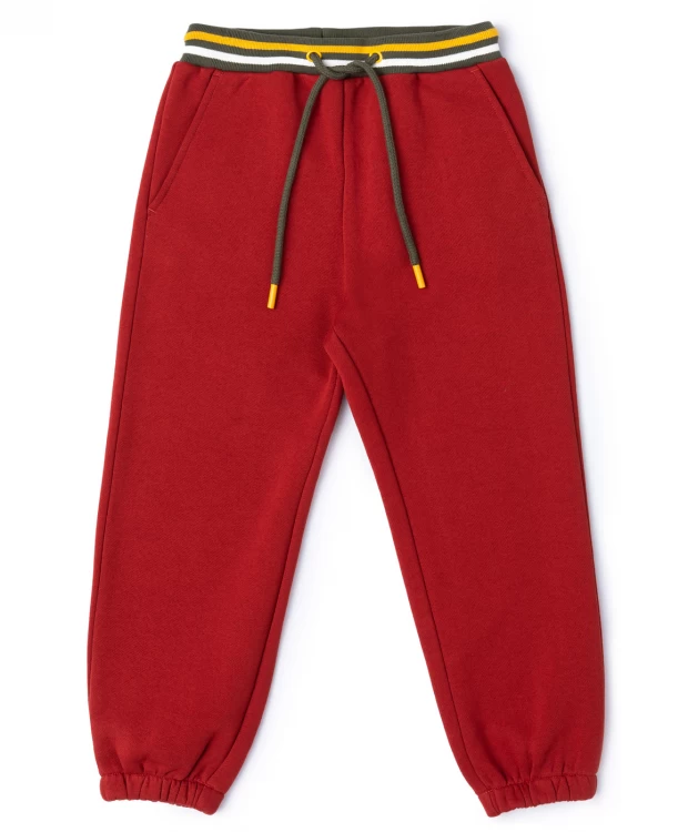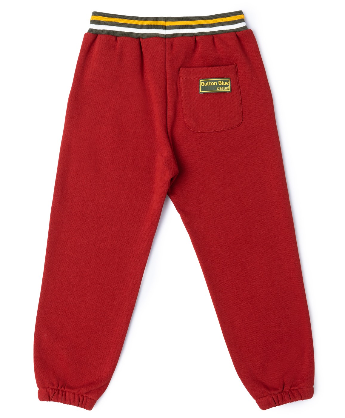 Трикотажные брюки красного цвета с начесом для мальчика. Эластичный рибовый пояс с завязками поможет отрегулировать посадку по фигуре. По бокам расположены удобные прорезные карманы. Джоггеры из футера имеют гладкую лицевую сторону и согревающую изнанку с начесом. Смесовый материал из хлопка и полиэстера подарит комфорт и оптимальную терморегуляцию во время носки. Манжеты на резинке будут мягко прилегать к ногам. Прямой крой джоггеров со слегка сужающимися к низу штанинами обеспечит свободную посадку. Утепленные детские брюки от Баттон Блю дополнены накладным карманом с брендированной нашивкой сзади.