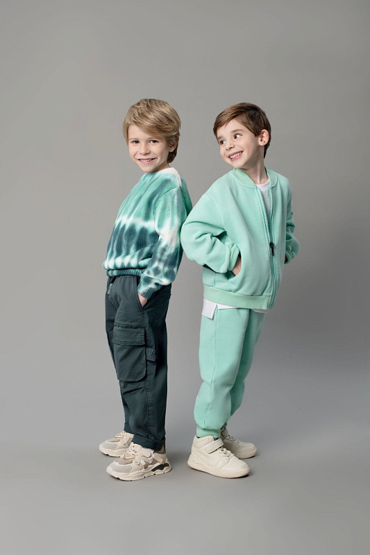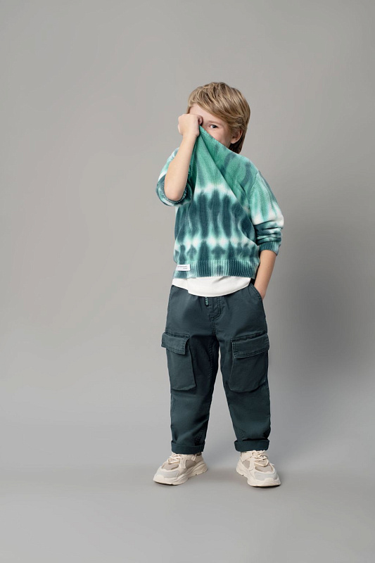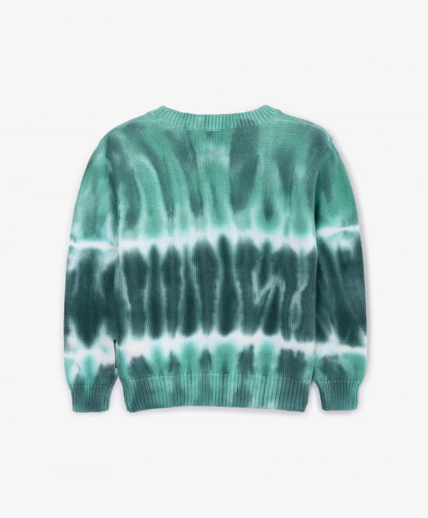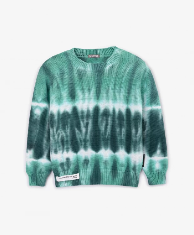 Оригинальный вязаный джемпер - отражение модных трендов! Выразительное крашение тай-дай(tie-dye), благородная мятная цветовая гамма делает джемпер интересным, необычным, не похожим на другие модели. Стильный хлопковый джемпер подчеркнет креативный подход к формированию образа, построенного на комфорте и непринужденности. В оформлении джемпера использована нашивка с шрифтовой графикой.