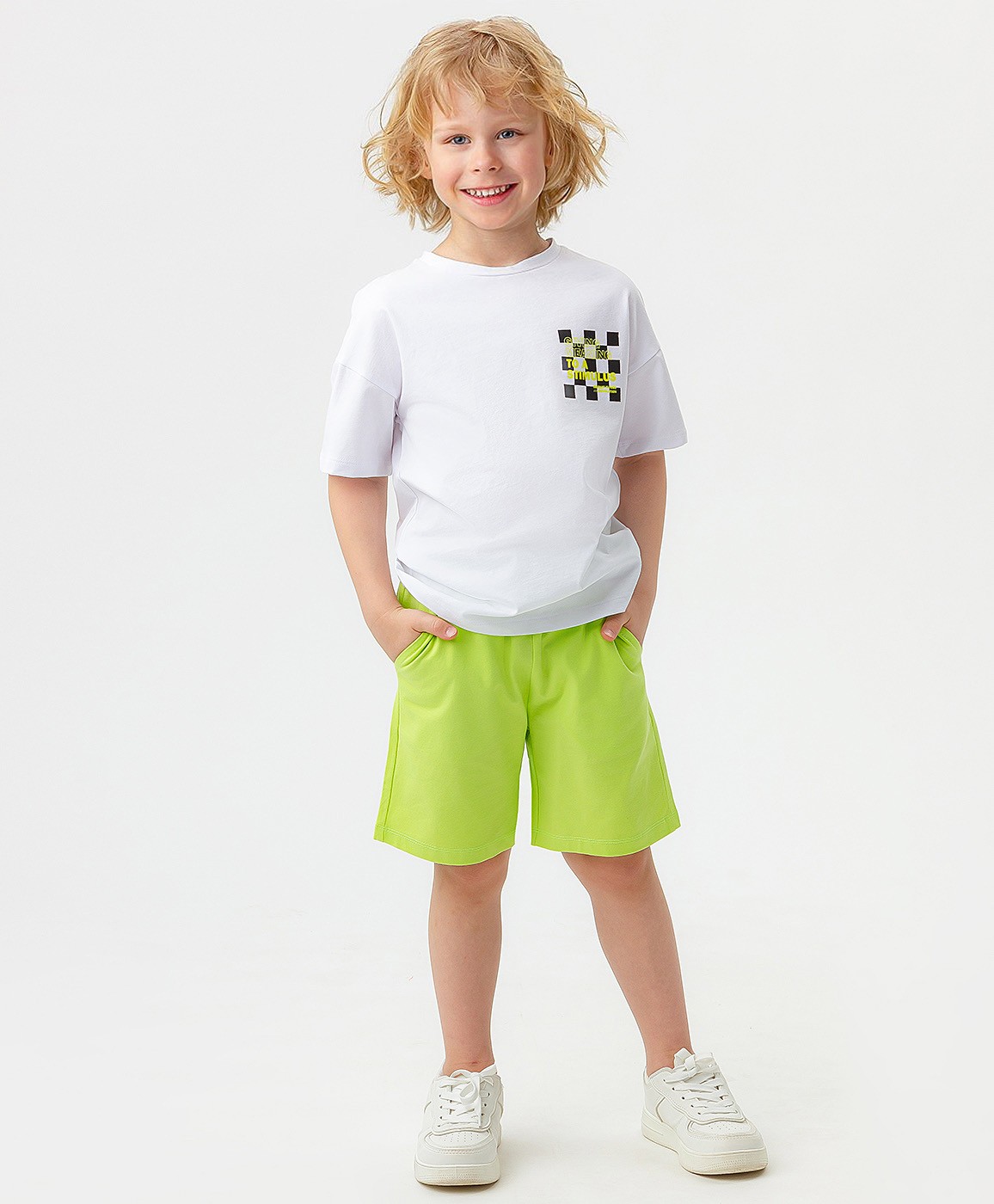 Базовые шорты для мальчика салатового цвета с поясом на резинке и патчем-нашивкой сзади в цвет основной ткани. Мягкий хлопковый материал с небольшим добавлением эластана приятен на ощупь, прост в уходе и обеспечивает оптимальную терморегуляцию, поэтому шорты будут комфортны в носке весной, летом и ранней осенью. Прямой крой модели обеспечит свободу в движениях без облегания. По бокам расположены удобные прорезные карманы. Функциональные завязки на поясе помогут скорректировать ширину модели индивидуально по фигуре. Шорты длиной до колен дополнены стильными акцентами - завязками с контрастными наконечниками черного цвета и брендированным патчем-нашивкой сзади справа. Модель оптимально подходит для занятий физкультурой в школе и детском саду, а также для составления ярких повседневных образов на море, на дачу и для знойных городских прогулок. Подберите к шортам идеальный верх в коллекции Button Blue.