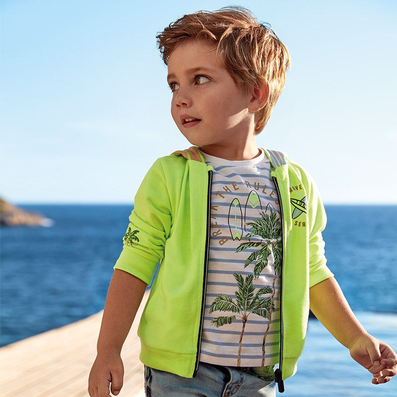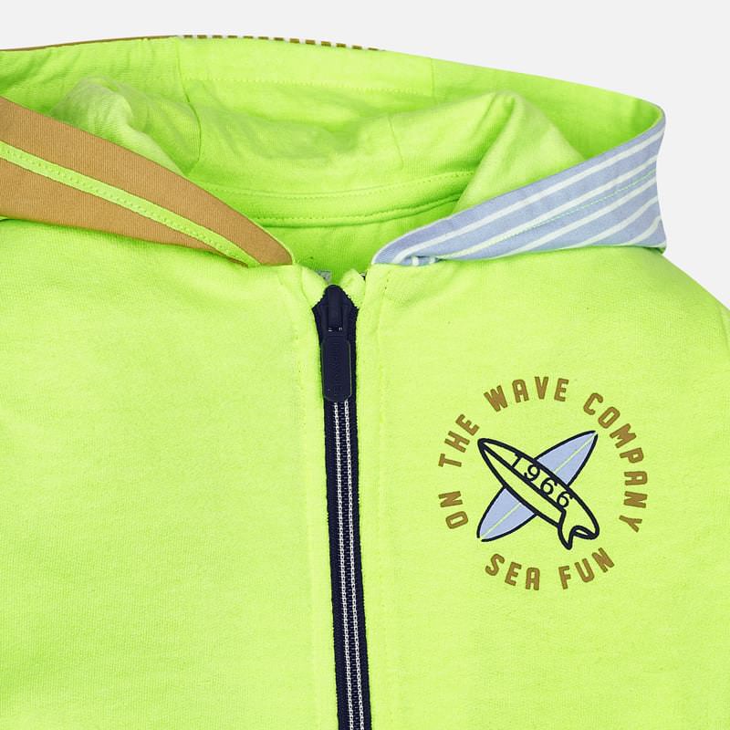 Толстовка для мальчиков с эластичными манжетами и контрастным капюшоном. Передняя центральная молния. Мягкая плюшевая ткань. Функциональные карманы спереди. Элементы орнамента: декоративные рисунки.