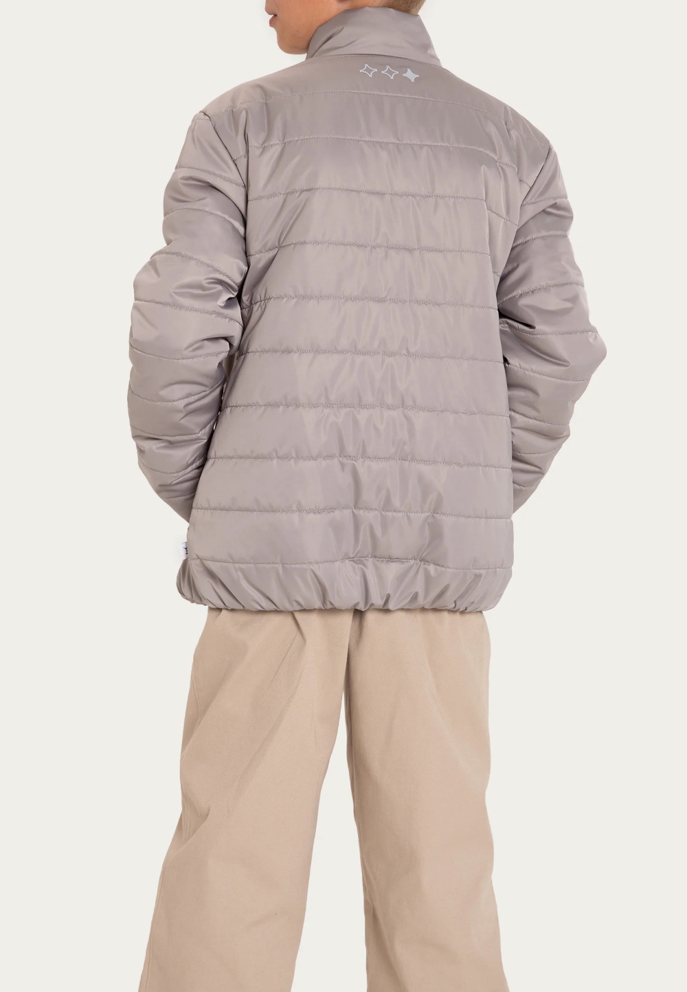 Универсальный дизайн и серый цвет сочетают городской стиль и удобство. Для учёбы, прогулок и дел — когда важно чувствовать себя комфортно и собранно, даже если на улице осенний ветер и дождь.  Материал куртки надёжно защищает от непогоды. Ткань легко стирается и быстро сохнет. Удобные карманы снаружи и внутри добавляют функциональности. Дизайн с уникальным посланием придаёт модели индивидуальность. Rise — это не о громких успехах, а о маленьких, но значимых шагах.