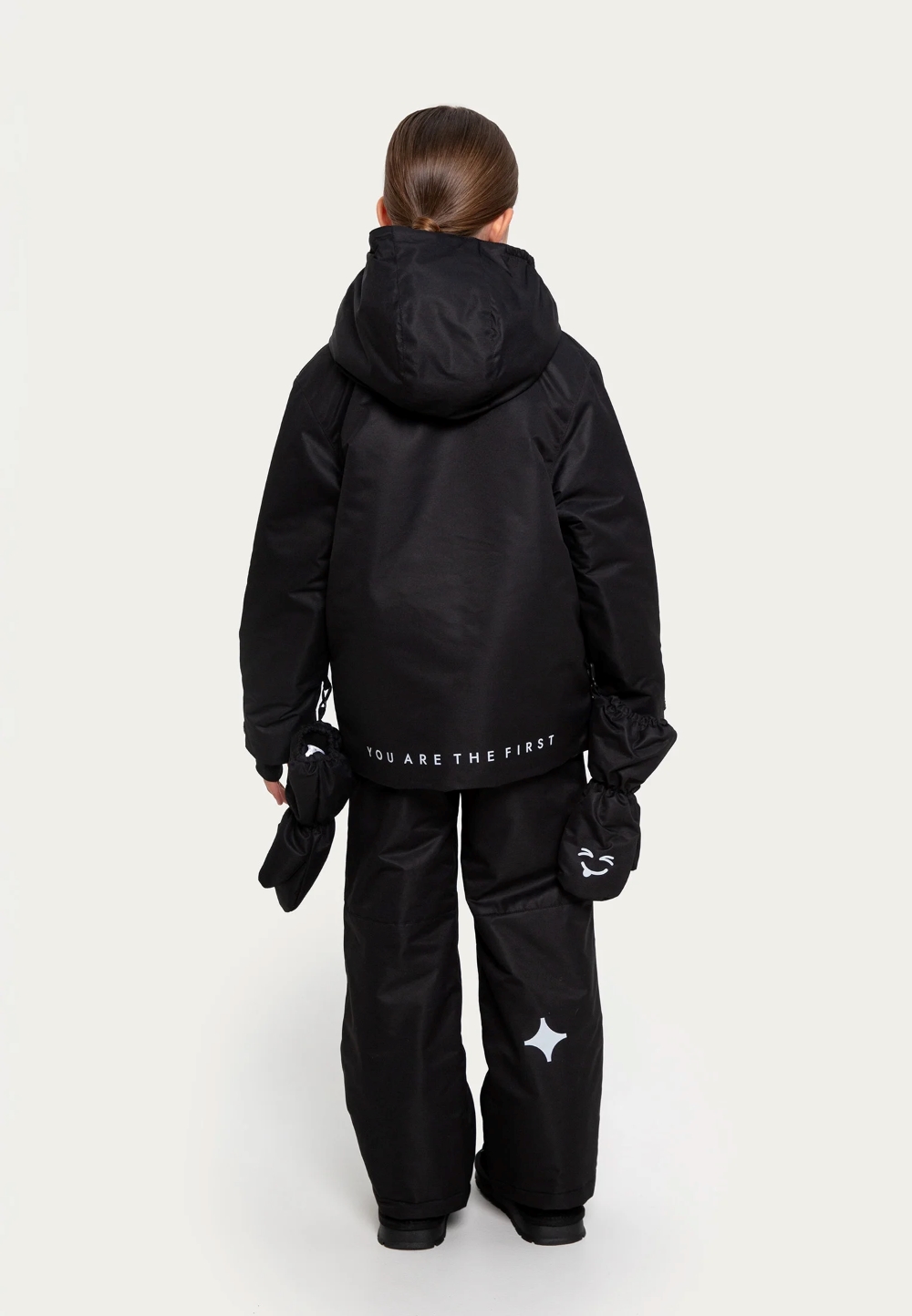 Утепленные брюки подходят для активных прогулок, а черный цвет гармонично впишется в любой комплект верхней одежды. Мы добавили светоотражающий принт, благодаря которому ребенок будет в безопасности. Мембранная ткань 5000/5000 защищает от снега и ветра, сохраняя при этом комфортный микроклимат внутри одежды. В модели использован утеплитель Shelter 80гр/м2, он сохраняет тепло, позволяя активно двигаться, и не сковывает движений. Низ брюк прямой, есть снегозащита.