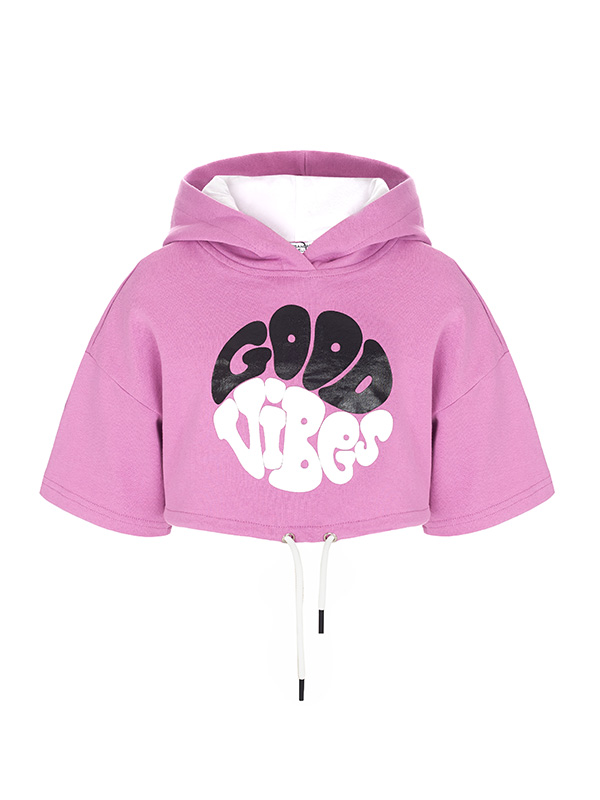 Хлопковое розовое худи с капюшоном и принтом.
