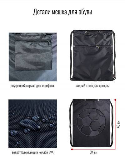 Мешок-рюкзак удобно носить на плече или как рюкзак на спине, а также за ручку. Для безопасного использования в любое время суток, мешок дополнен светоотражающими элементами, которые обеспечивает безопасность в условиях недостаточного освещения, сделают его видимым на дорогах в свете автомобильных фар.