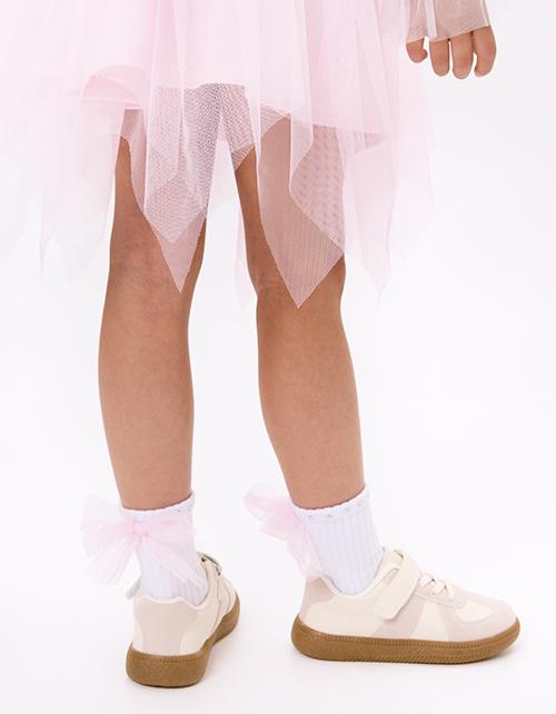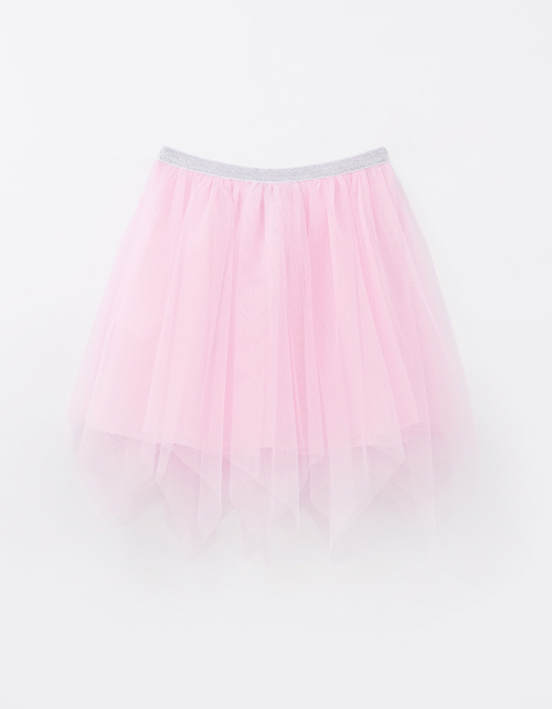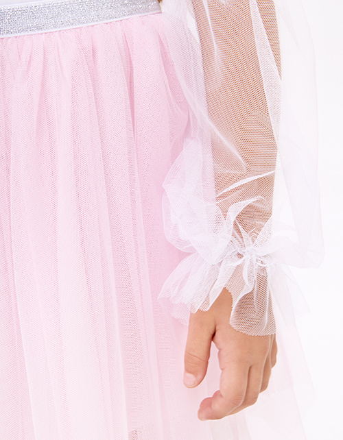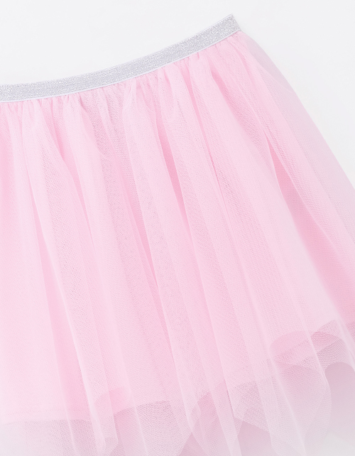 Дизайнерская юбка для девочки. Летящий трапециевидный силуэт с клиньями и лёгким сетчатым полотном создаёт воздушность. Эластичная резинка обеспечивает комфорт, а блестящий пояс добавляет праздничного сияния. Нежная кулирная гладь и мягкая сетка.