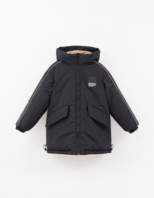 Зимняя двухсторонняя куртка для девочки. Прямая модель с регулировкой по низу. Капюшон с утяжкой. Внешние и внутренние карманы. Декорирована нашивкой и плёнкой. Гипоаллергенный силиконизированный синтепон. Рекомендовано до -25 °C.