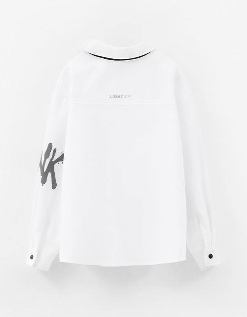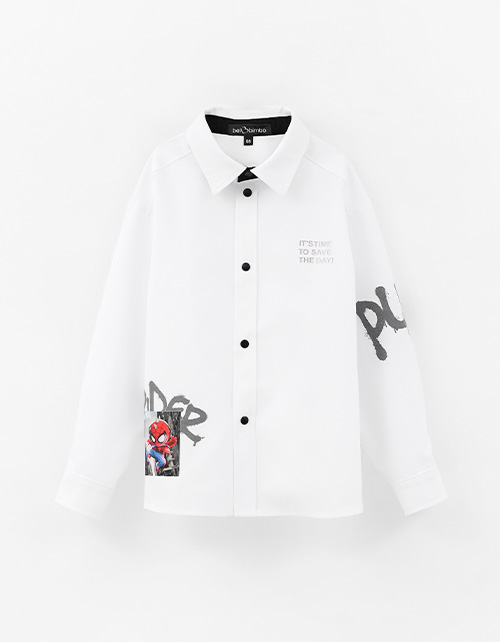 Белая рубашка для мальчика. Модель комфортного прямого силуэта. Комфортная застёжка на кнопки. Рубашка декорирована авторским цифровым принтом, инновационной DTF и трансферной плёнкой.