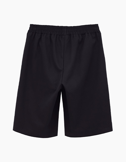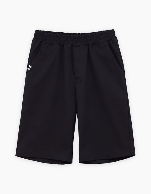 Чёрные шорты из твила. Модель прямого силуэта. Средняя посадка, мягкий эластичный пояс. Дополнены карманами-хулиганами. Лаконичный декор репсовой тесьмой. Можно позиционировать как модель унисекс.