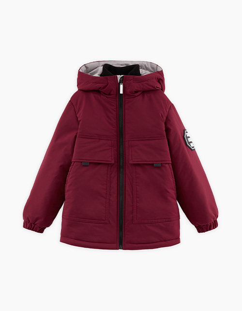 Осенняя куртка оттенка гранатовый сок. Объёмные накладные карманы с клапаном. Стильный матовый материал с фактурой клетки. Водо- и грязеотталкивающая пропитки. Комбинированная подкладка: флис и нейлон. Утеплитель: гипоаллергенный синтепон. Авторский декор