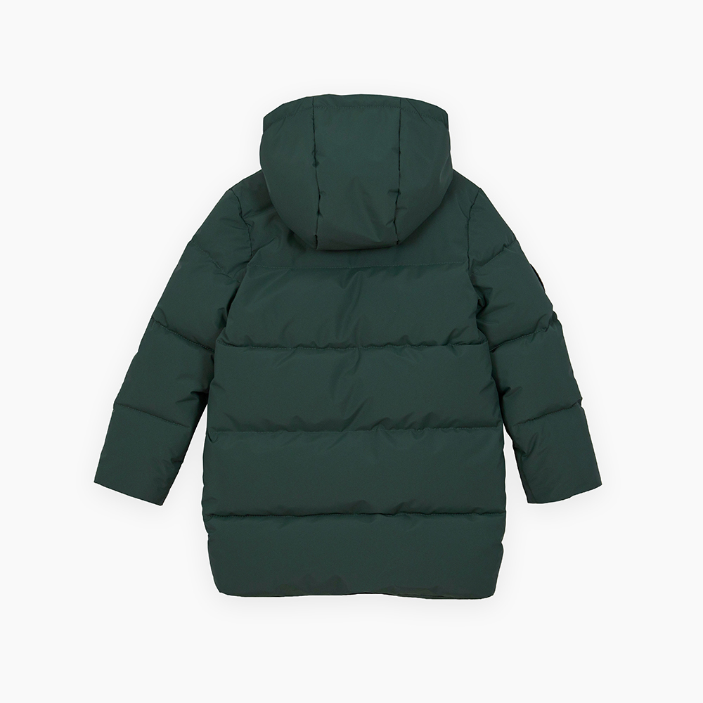 Зимняя темно-зеленая куртка на синтепухе. Модель на молнии, закрытой ветрозащитной планкой на кнопки. Мягкие трикотажные манжеты по внутреннему воротнику и рукавам. Объёмные вместительные карманы на флисе. Подкладка из нейлона. Дизайнерская нашивка-лейбл.