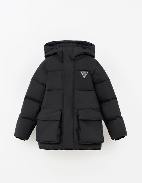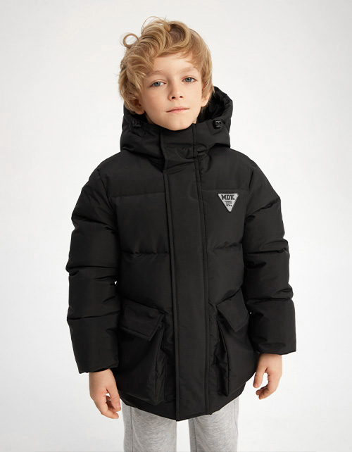 Зимняя куртка для мальчика. Прямая модель с капюшоном и воротником-стойкой. Объёмные карманы. Застёжка на молнию с ветрозащитной планкой и кнопками. Декорирована нашивкой и плёнкой. Утеплитель - гипоаллергенный лебяжий синтепух. Рекомендовано до -25°C.