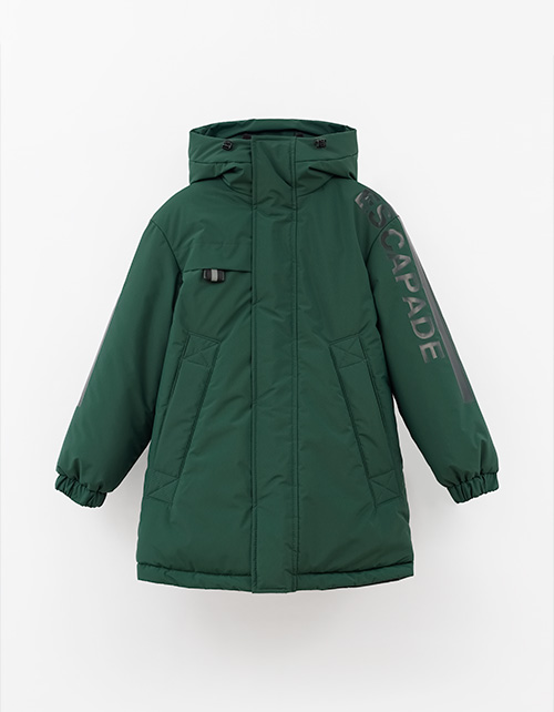 Зимняя куртка на гипоаллергенном синтепоне. Материал с 4-х уровневой степенью защиты. Прямая модель с капюшоном и воротником-стойкой. Декорирована плёнкой, репсовой тесьмой и полукольцом. Подкладка: флис и нейлон. Рекомендуемая температура: до -25 °C.