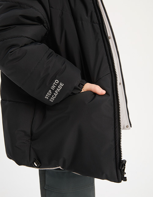 Модельные особенности: Силуэт-прямой; двухсторонняя модель; регулировка по низу; капюшон