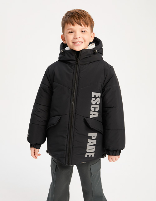Зимняя двухсторонняя куртка на гипоаллергенном синтепоне для мальчика. Плащёвая матовая ткань с 4-х уровневой степенью защиты. Прямая модель с регулировкой по низу. Капюшон с утяжкой. Ветрозащитная планка. Рекомендуемая температура: до -25 °C.