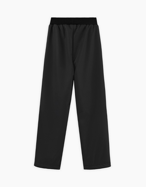 Чёрные плащевые брюки на флисе для мальчика. Комфортная прямая модель со средней посадкой. Мягкий эластичный пояс удобен и прост в одевании. Приятный на ощупь износостойкий материал с водоотталкивающим, водонепроницаемым и ветрозащитным покрытием.