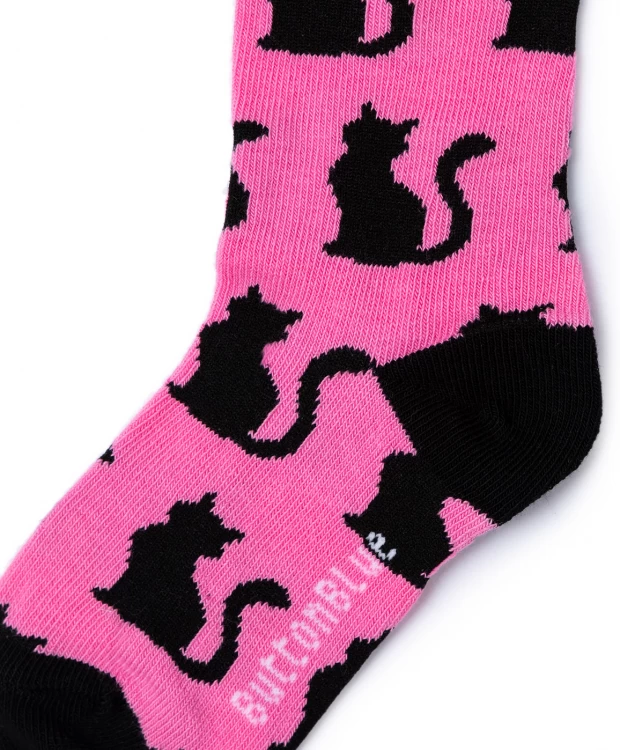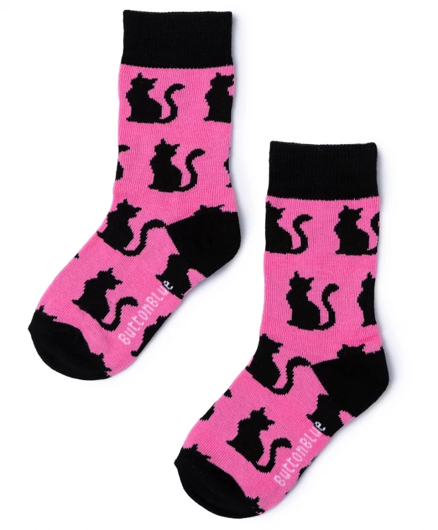 Черно-розовые гольфы с контрастным рисунком для девочки. Пара сшита из хлопка с небольшим добавлением полиамида и эластана, что обеспечивает хорошую растяжимость, а также оптимальный воздухообмен, позволяя коже дышать. Рибовые резинки будут мягко и плотно прилегать к ногам, предотвращая соскальзывание носков при ходьбе. Дизайн с жаккардовым рисунком в виде котиков порадует модницу и позволит внести в образы яркий акцент. Гольфы от Баттон Блю подойдут для повседневных и праздничных мероприятий.