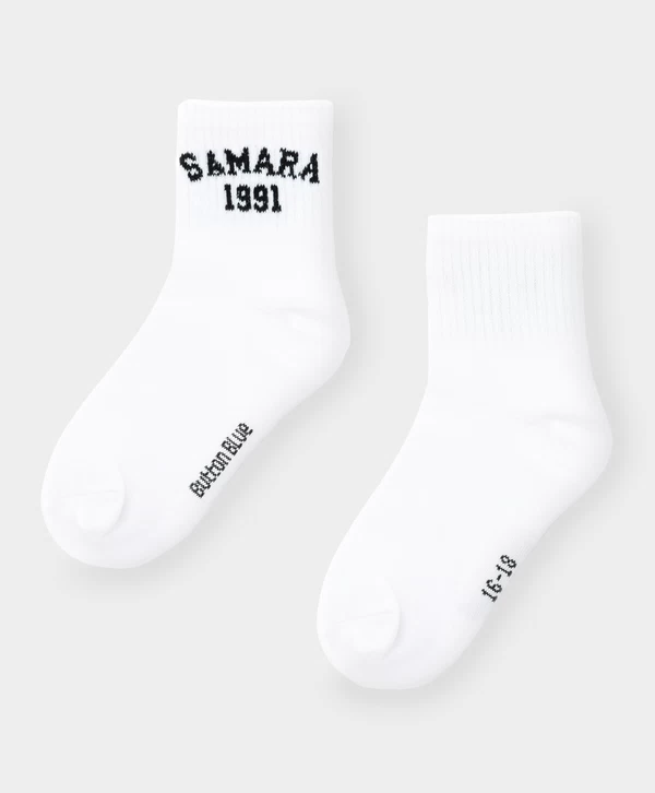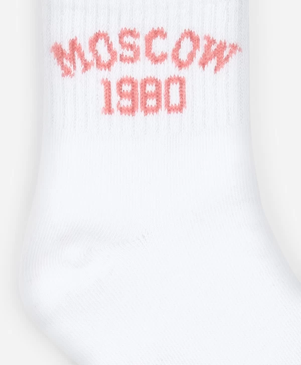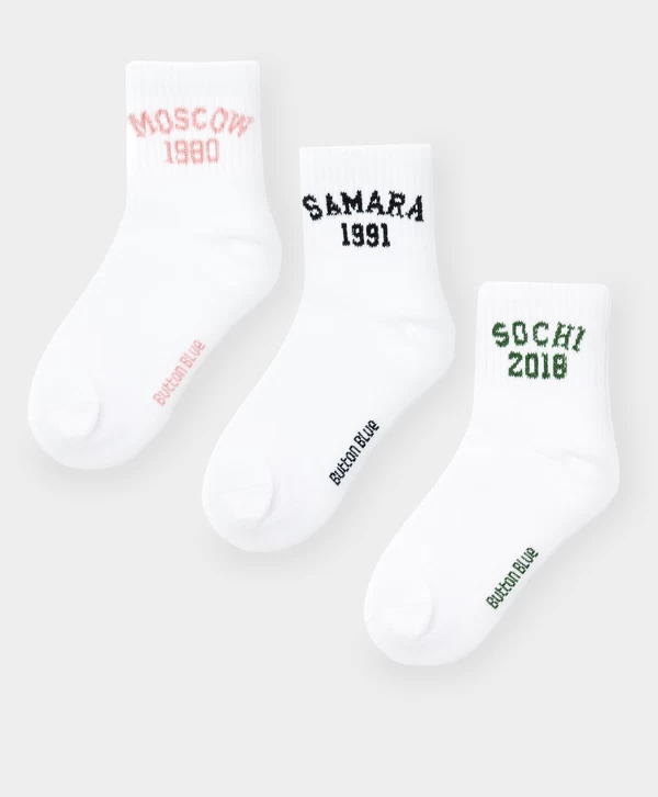 Набор из трёх пар носков с шрифтовыми принтами. Отличное дополнение к гардеробу. Все носки средней длины и белого цвета. Отличаются лишь надписями - Сочи, Москва и Самара. Все выполнены из качественного материала - 80% хлопка, 18% полиамида и 2% эластана. Они приятные к телу и хорошо тянутся.