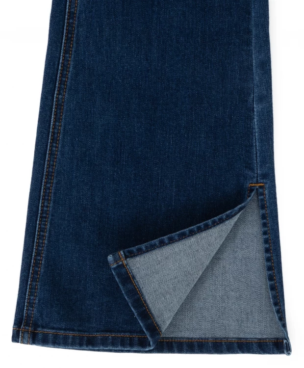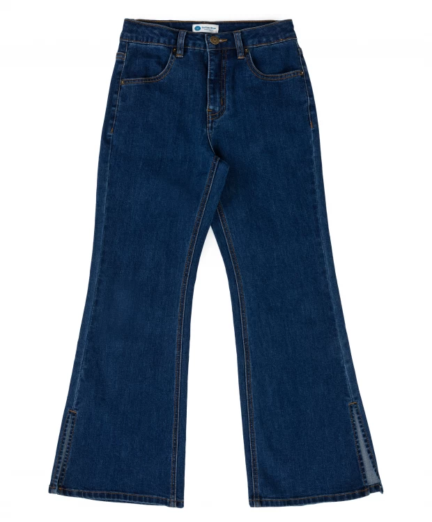 Синие джинсы Bootcut fit. Классический глубокий синий цвет, клеш и разрезы по бокам создают образ неповторимым, а обладательницу джинс - самой модной. Изготовлены из 99% хлопка и 1% эластана, комфортные, хорошо тянутся. Благодаря универсальному оттенку джинсы легко сочетаются с любой одеждой.
