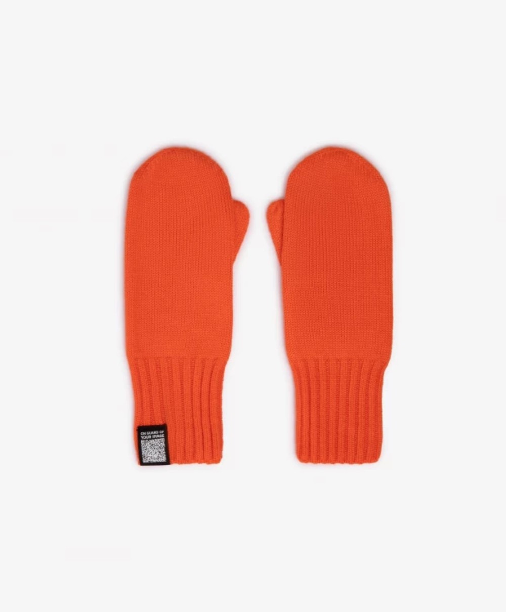 Яркие вязаные варежки- стильное завершение осеннего образа. В оформлении варежек использован жаккардовый флажок с qr-кодом, ведущим на сайт компании.