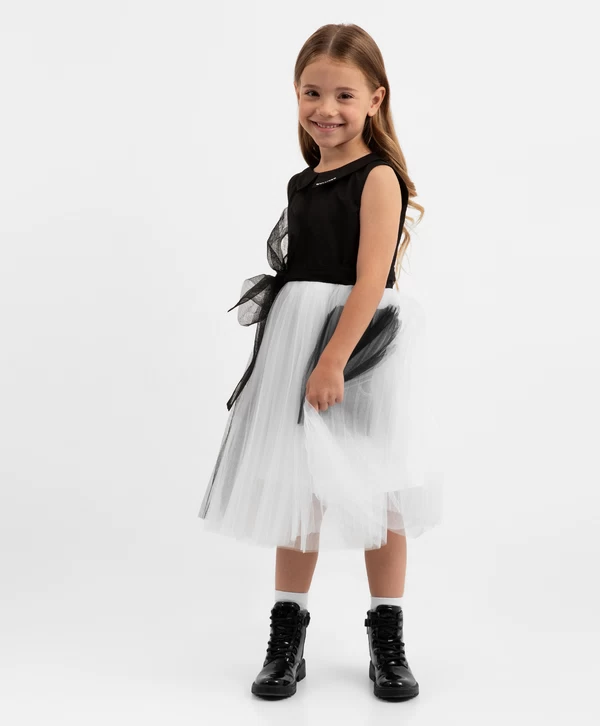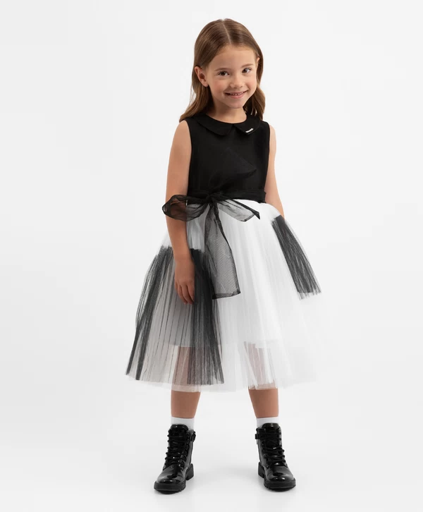 Платье без рукавов текстильное чёрно-белое для девочки Артикул: 224GPGMC2505