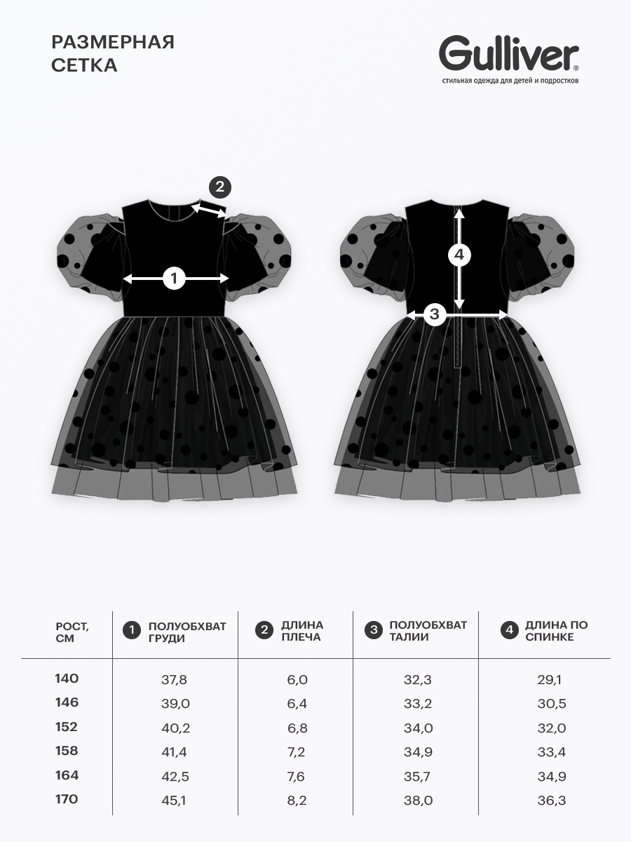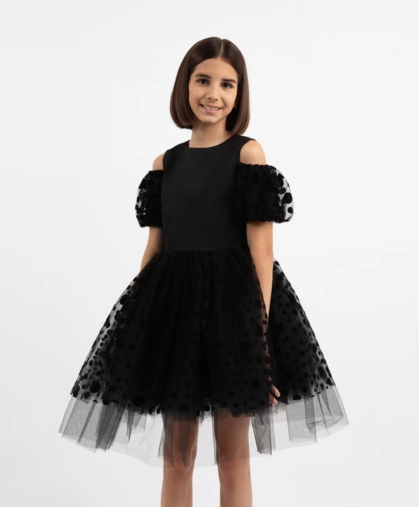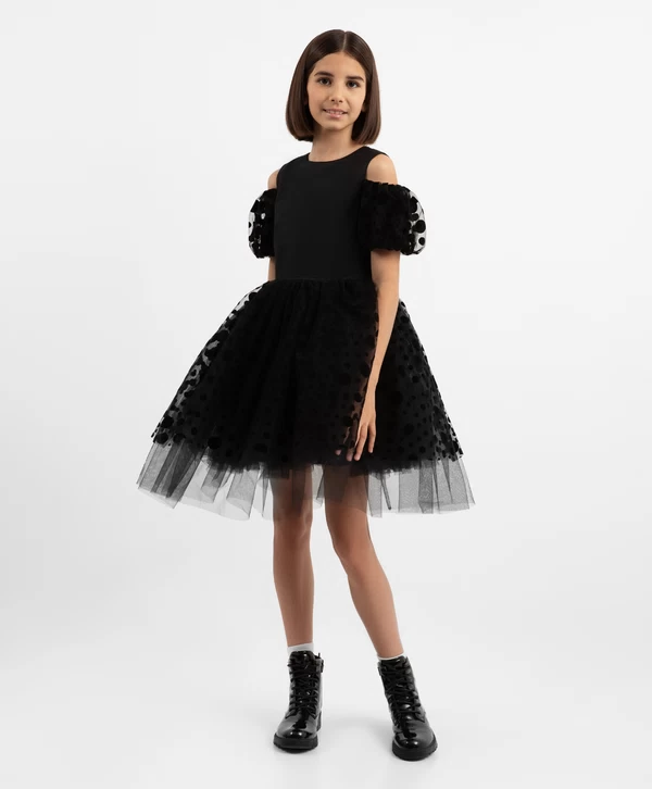 Платье комбинированное с объёмными короткими рукавами чёрное для девочки Артикул: 224GPGJC2502