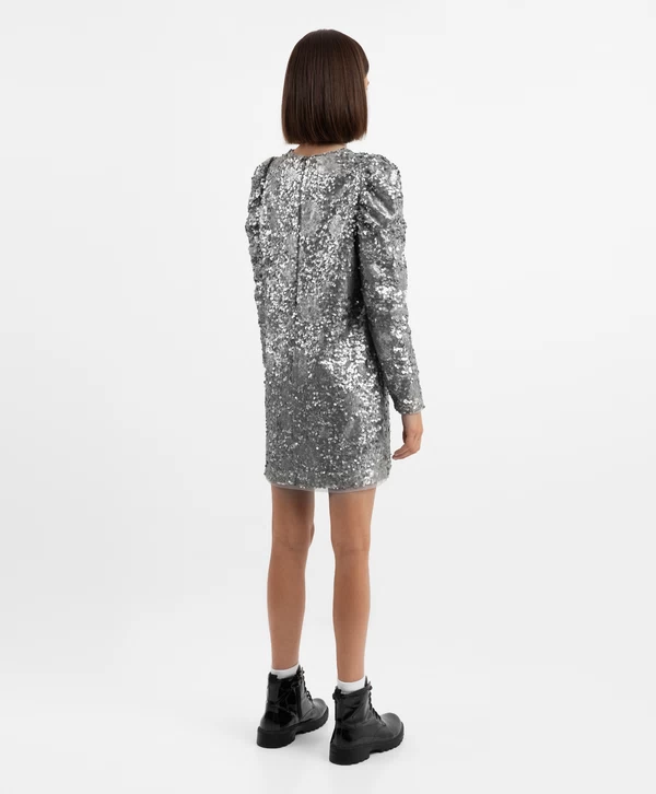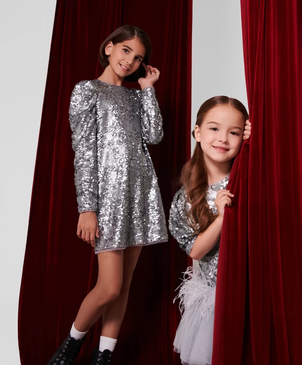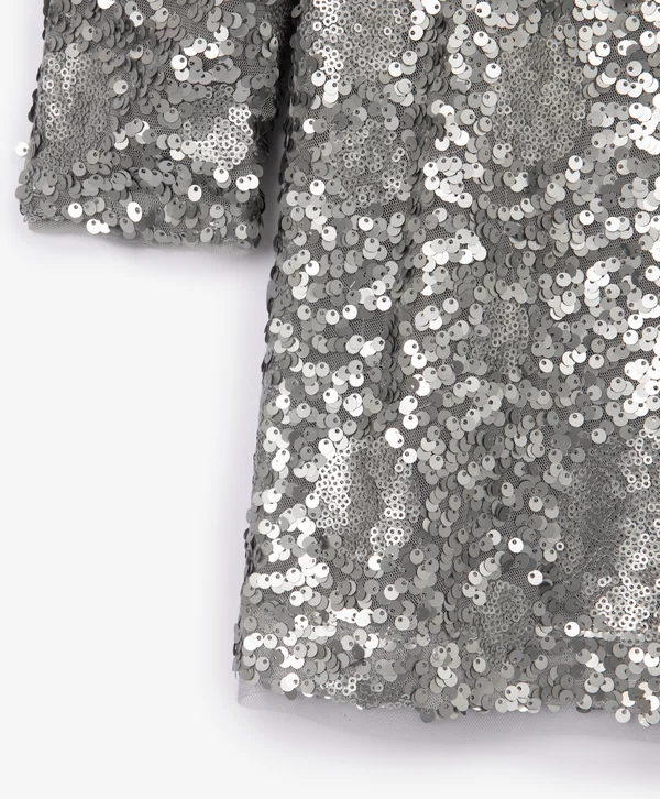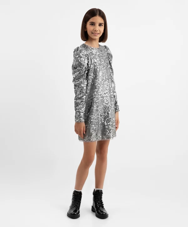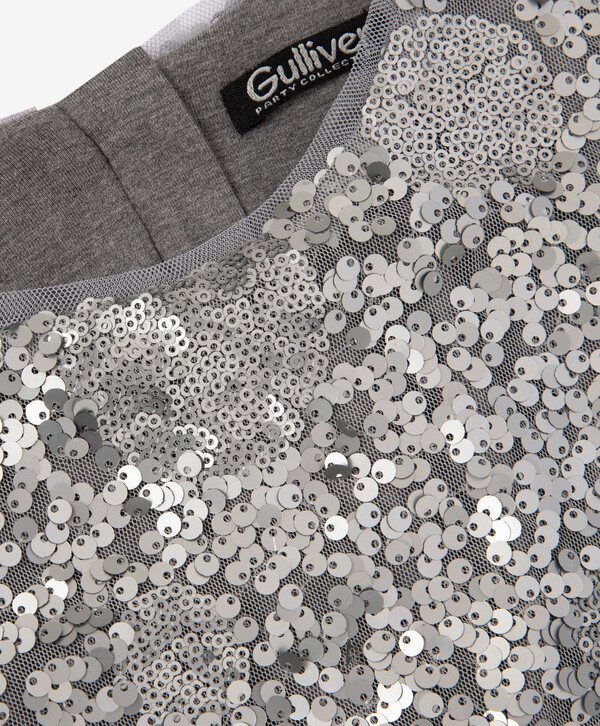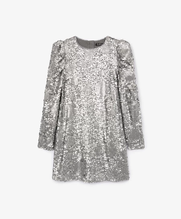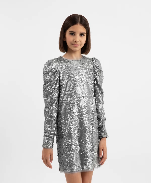 Платье с длинным рукавом и серебристыми пайетками для девочки Артикул: 224GPGJC5004