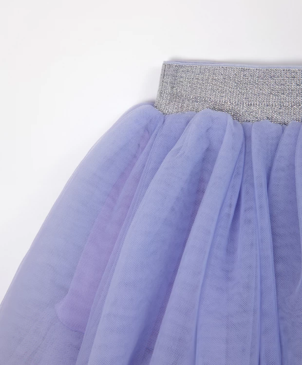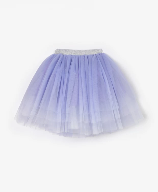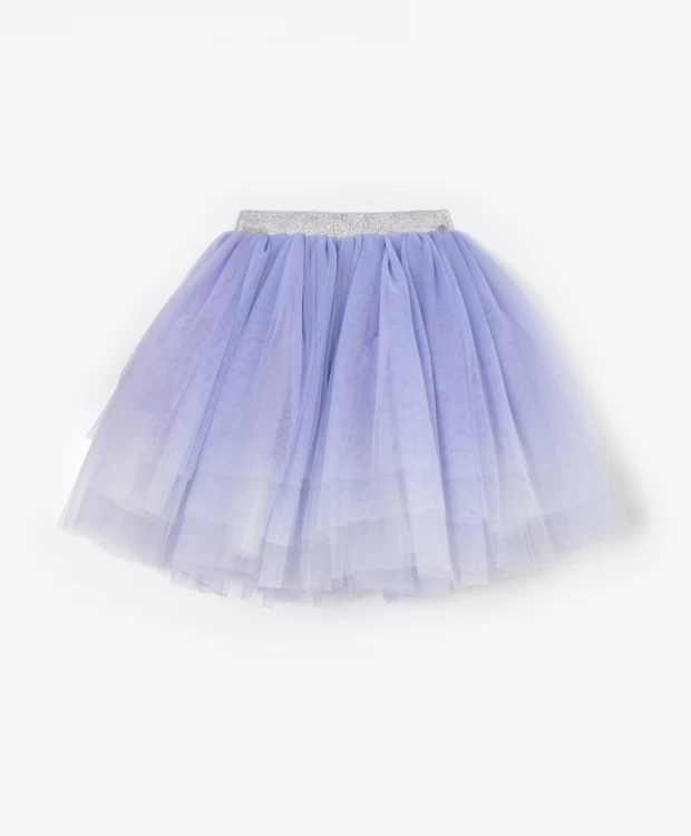 Пышная юбка из сетки - бестселлер Gulliver! И в новогодние и рождественские праздники, и для торжественных случаев в течение всего года, юбка из сетки - стилеобразующий элемент нежного нарядного образа, обладающего  грацией, легкостью, изяществом. Изюминка модели - градиентный цветовой переход от светлого разбеленного лавандового до насыщенного сиреневого, придающий изделию уникальность. Юбка имеет мягкий пояс из серебристой эластичной тесьмы. Хлопковая подкладка создает комфортное взаимодействие с кожей ребенка.