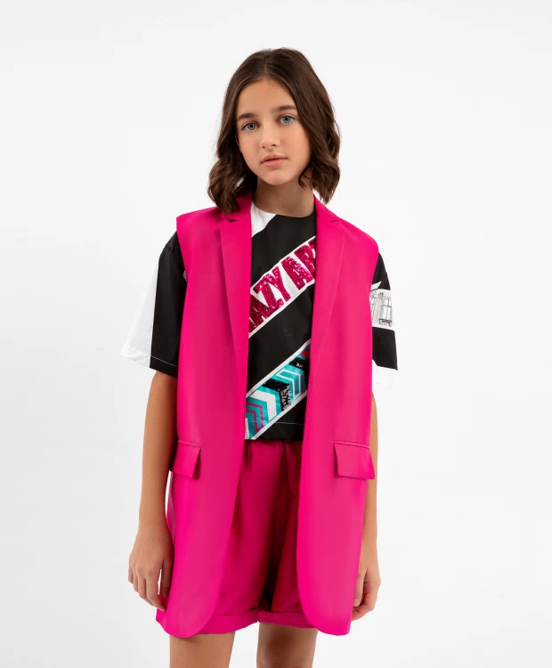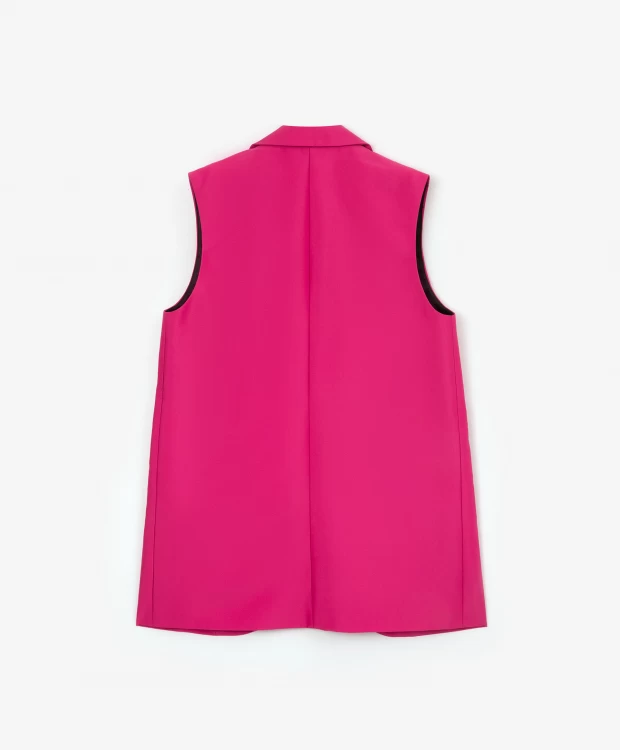 Удлиненный текстильный жилет цвета фуксии - остромодная вещь, воплощение главного тренда на индивидуальность, свежесть, креативность решения! С юбкой, брюками, шортами, жилет составит стильный завершенный комплект.