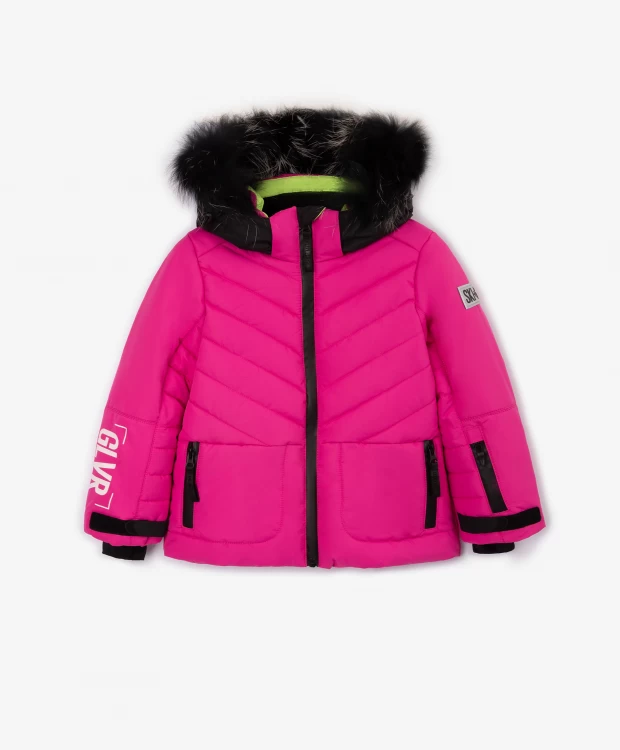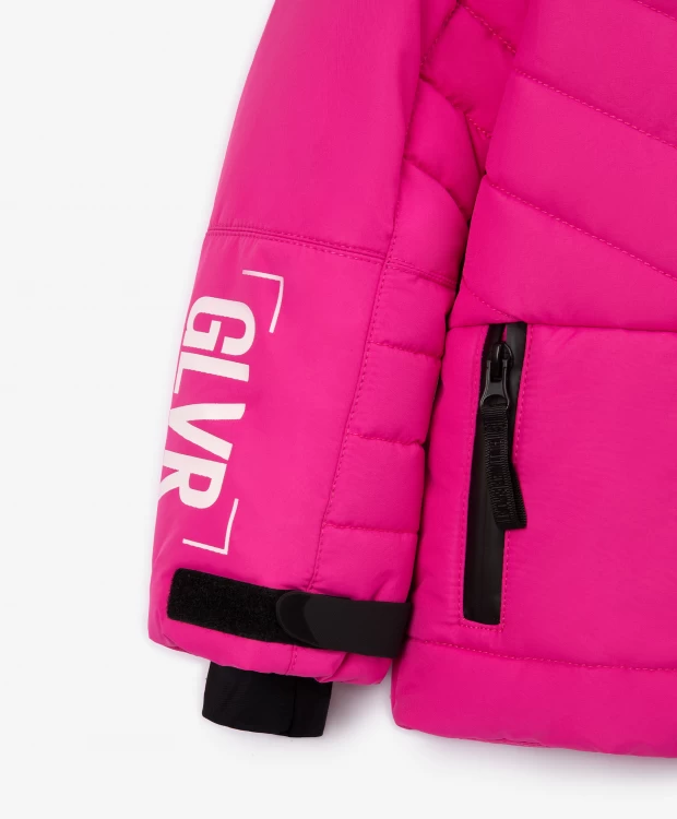 Зимняя спортивная куртка, выполненная из плотной матовой износостойкой плащовки на искусственном пуху и тонкой флисовой подкладке, привлечет любительниц горнолыжного спорта свежим интересным дизайном и продуманной функциональностью! Модный насыщенный цвет фуксии с контрастной отделкой, шрифтовые принты, светоотражающие элементы создают впечатление классной, динамичной, эффектной модели, способной сделать образ ребенка модным, энергичным, запоминающимся.