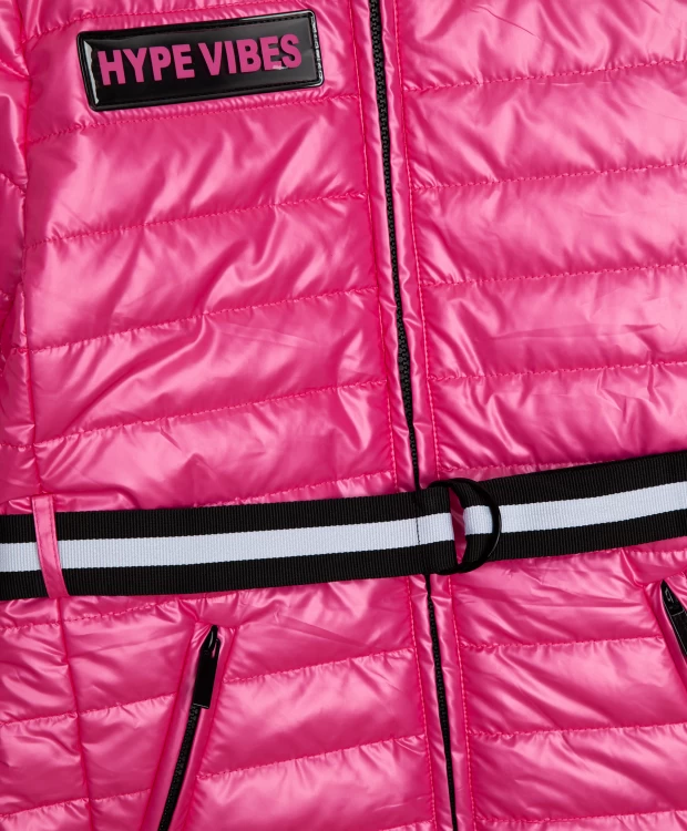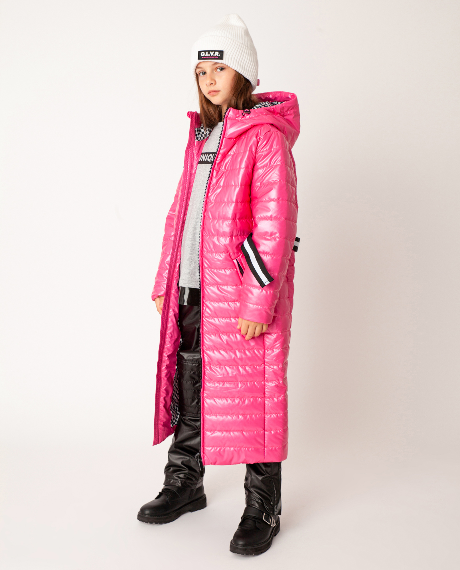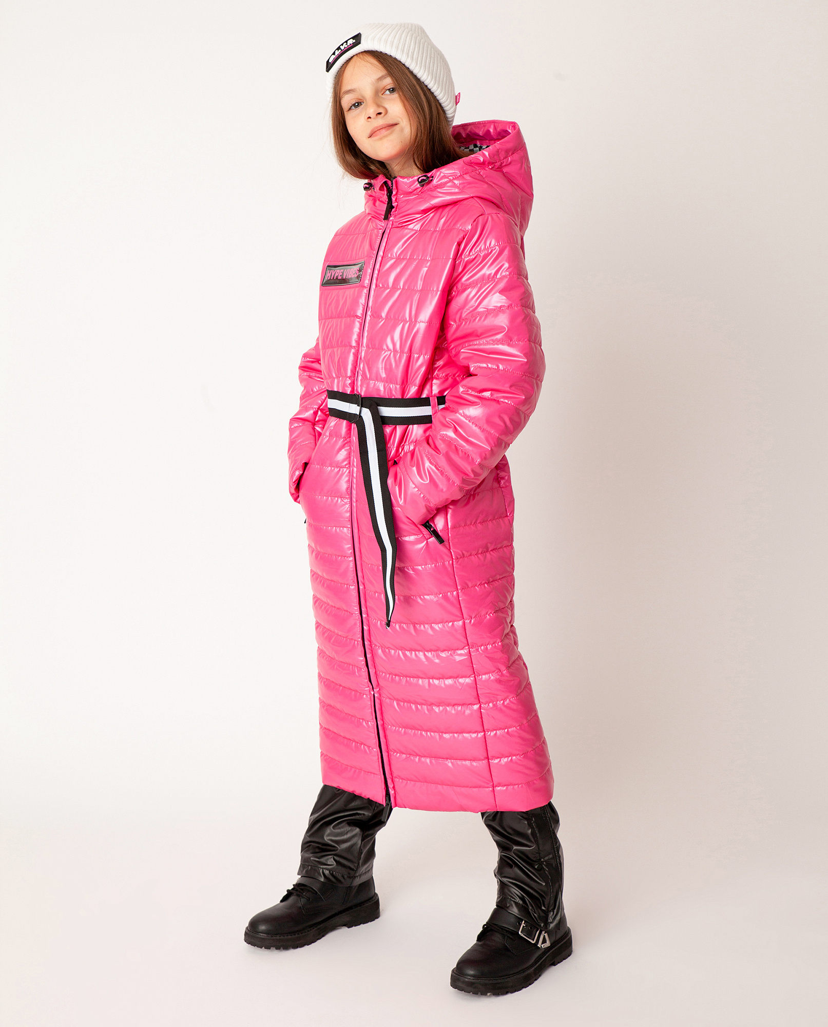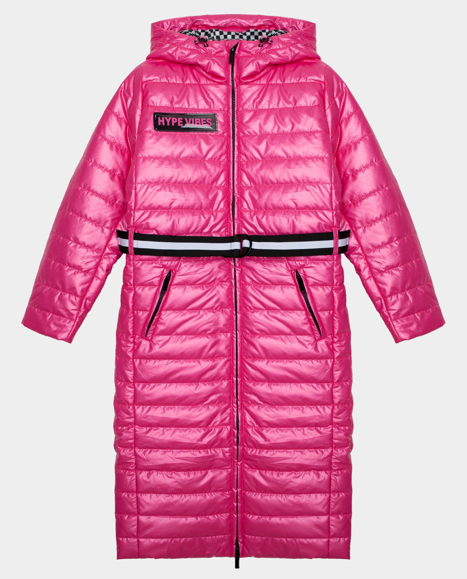 Стеганое демисезонное пальто на синтепоне из блестящей "шуршащей" плащевки – яркий акцент гардероба в спортивном стиле. Верх изделия выполнен из 100% полиэстера. Этот материал не пропускает влагу, устойчив к появлению катышек и различным загрязнениям. Прочный, долговечный и устойчивый к деформации, в течение долгого времени, материал. Ваш ребенок не промокнет даже под сильным мокрым снегом, что обеспечит комфорт, а Вам чувство спокойствия. Внутри утеплитель из полиэстера не теряет форму, быстро сохнет, мало весит. Также он сохраняет тепло при низких температурах.  Контрастная черно-белая подкладка в мелкую клетку, пояс-стропа с застежкой на полукольца, фирменная лаковая нашивка на передней части изделия формируют яркий динамичный образ девочки подросткового возраста.