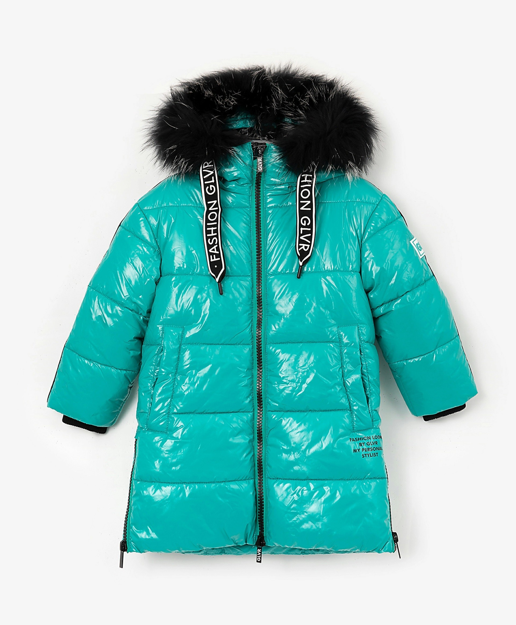 Теплое зимнее пальто на искусственном пуху для длинной морозной зимы - изделие из разряда must have! Выполненное из яркой глянцевой плащовки, пальто выглядит интересно, красиво, свежо. Подкладка из флиса создает дополнительный теплый слой. Натуральный мех енота на капюшоне придает модели завершенность. В оформлении пальто использованы крупные тракторные молнии, широкая тесьма с шрифтовым принтом, вязаная тесьма, принт, брендированная фурнитура. Высокие разрезы по бокам, застегивающиеся на молнию, позволяют регулировать объем изделия внизу для свободы движений. Удобный элемент, повышающий функциональность - внутренние лямки, позволяющие в помещении носить пальто за спиной как рюкзак.