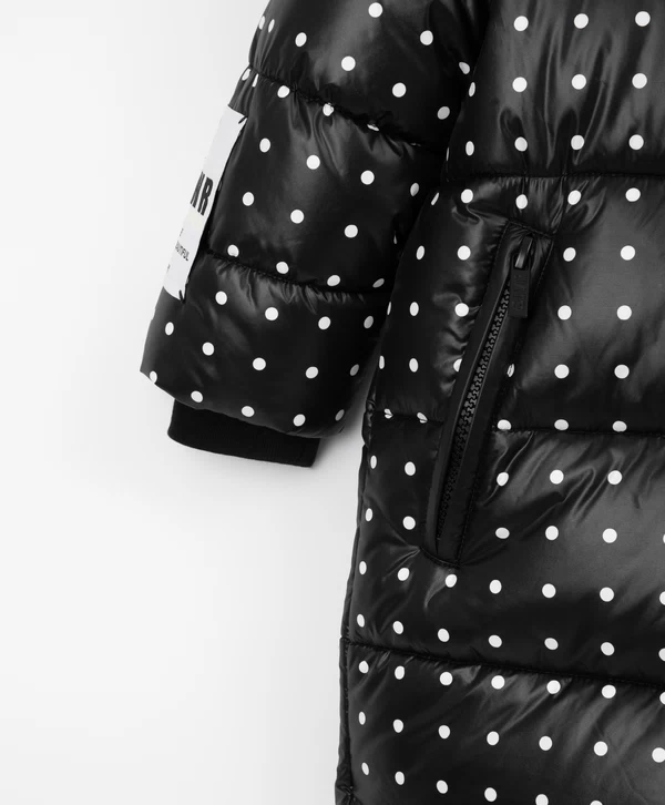 Пальто зимнее стёганое на искусственном пуху в горох чёрное для девочки Артикул: 22401GMC4503