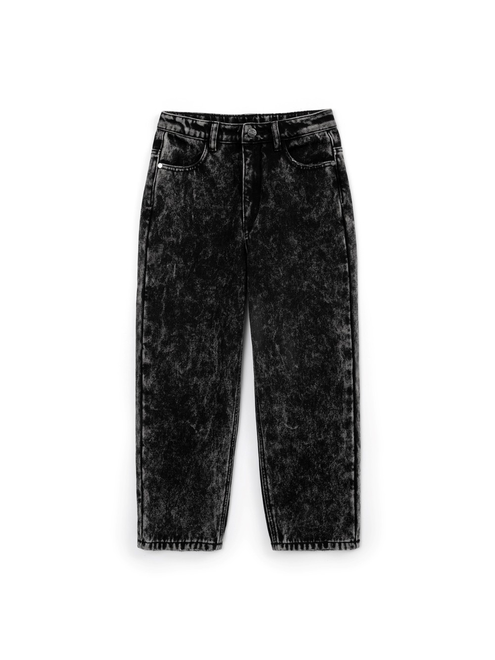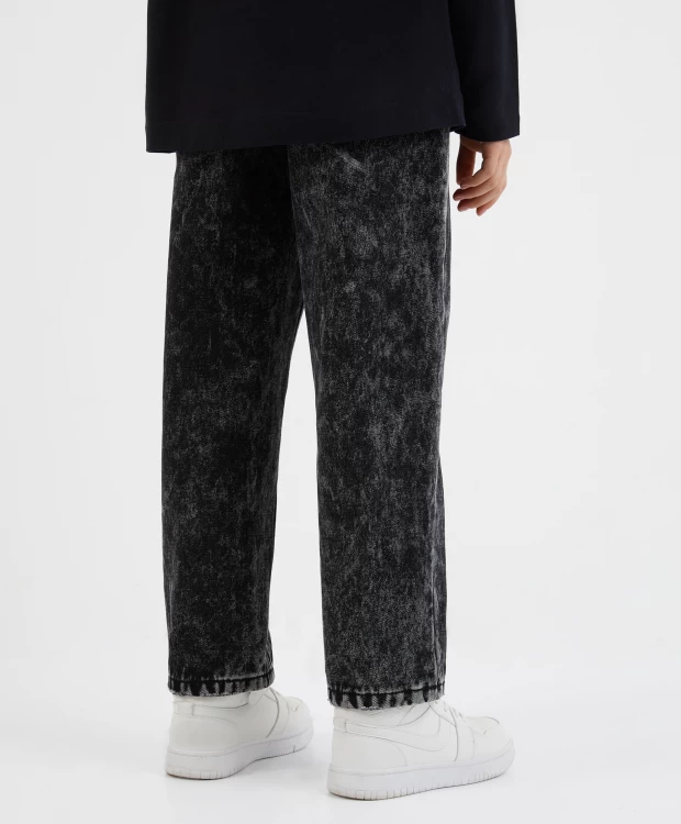 Плотные джинсы на флисе силуэта Mom-Fit - прекрасный вариант для прогулки в период межсезонья. Стильная мраморная варка делает джинсы модными, интересными, непохожими на другие. Подкладка из флиса, продублированная с денимом, не создает ненужного объема, способствуя удобству в эксплуатации вещи. В оформлении джинсов использована резиновая накладка на поясе.