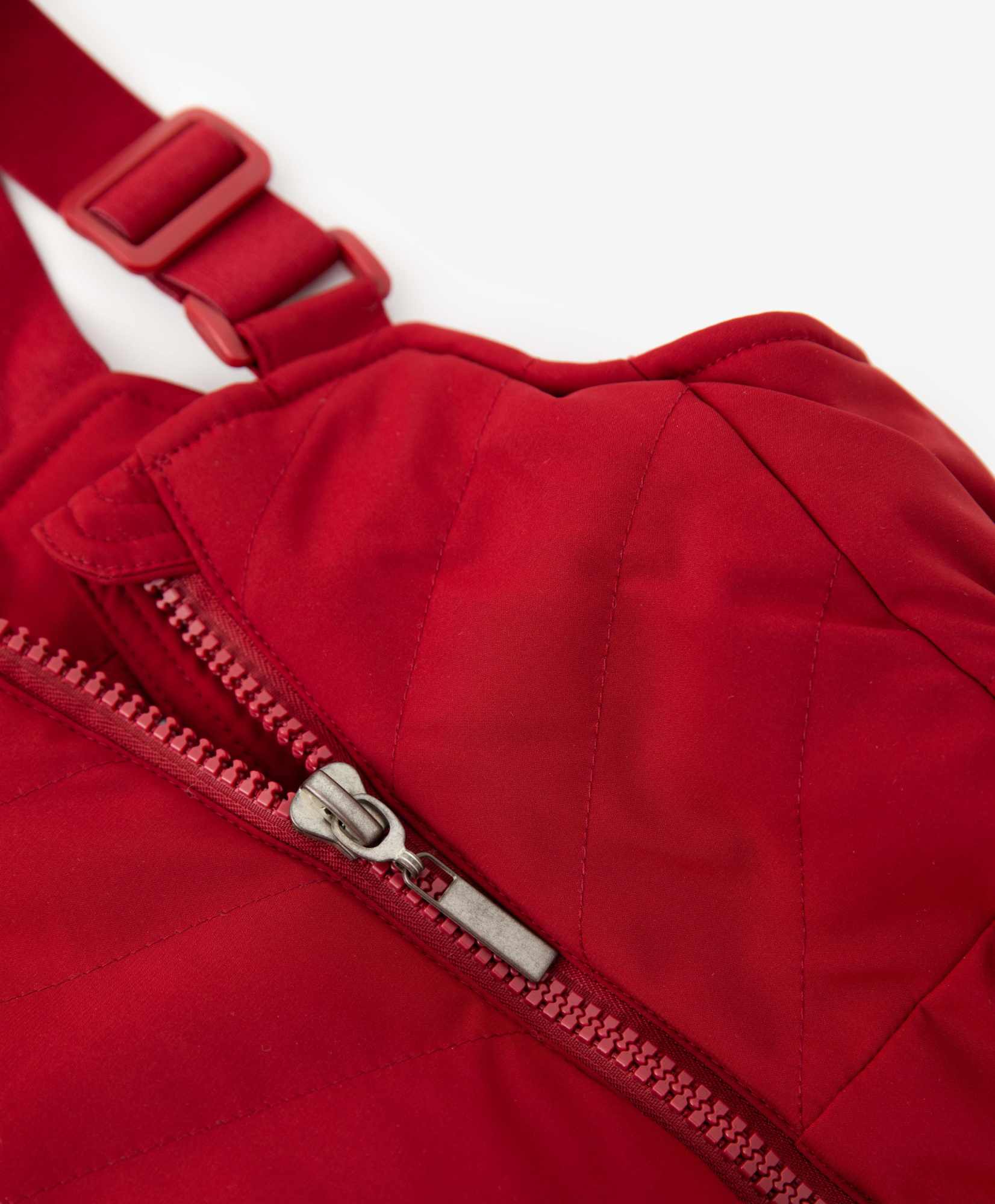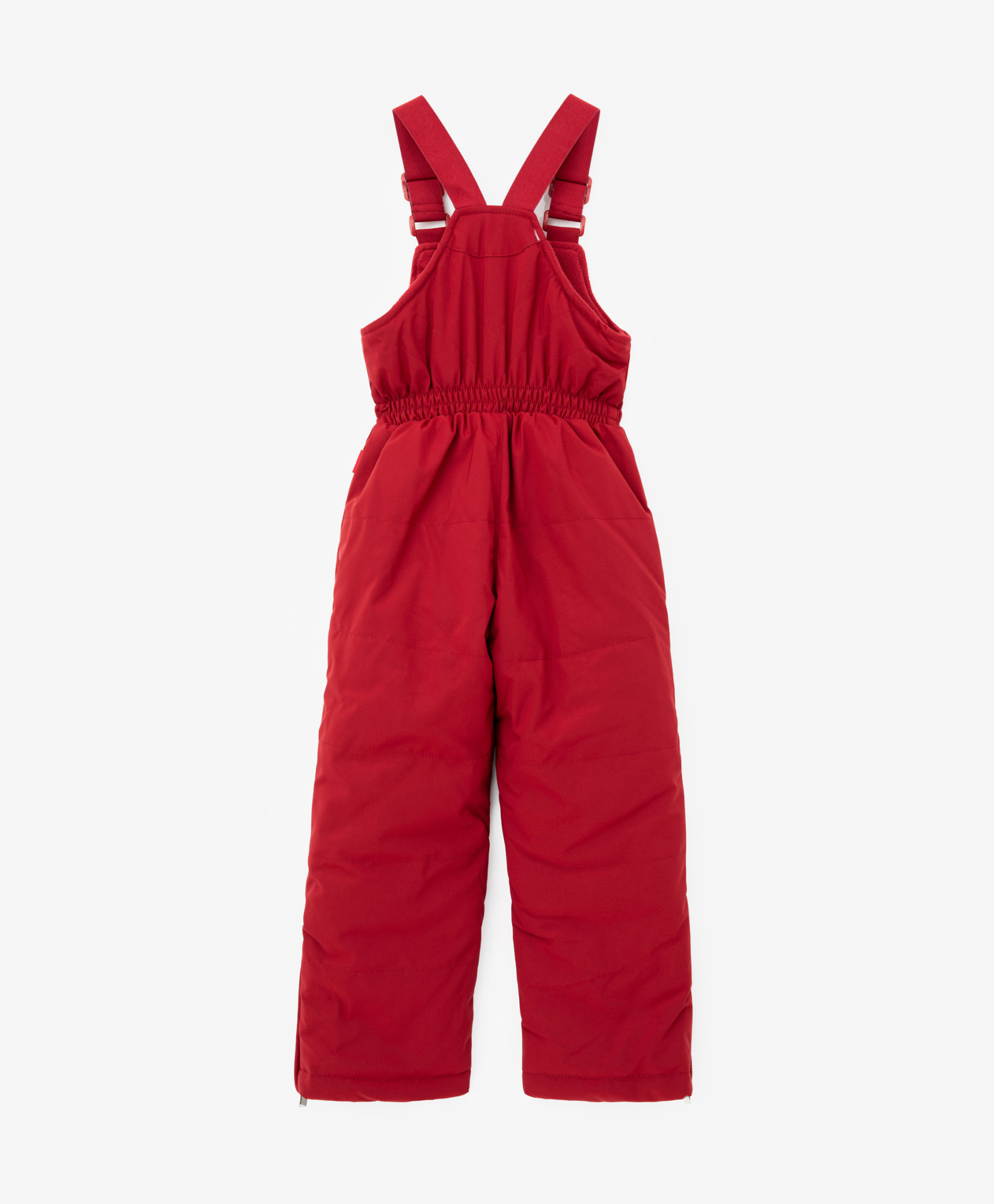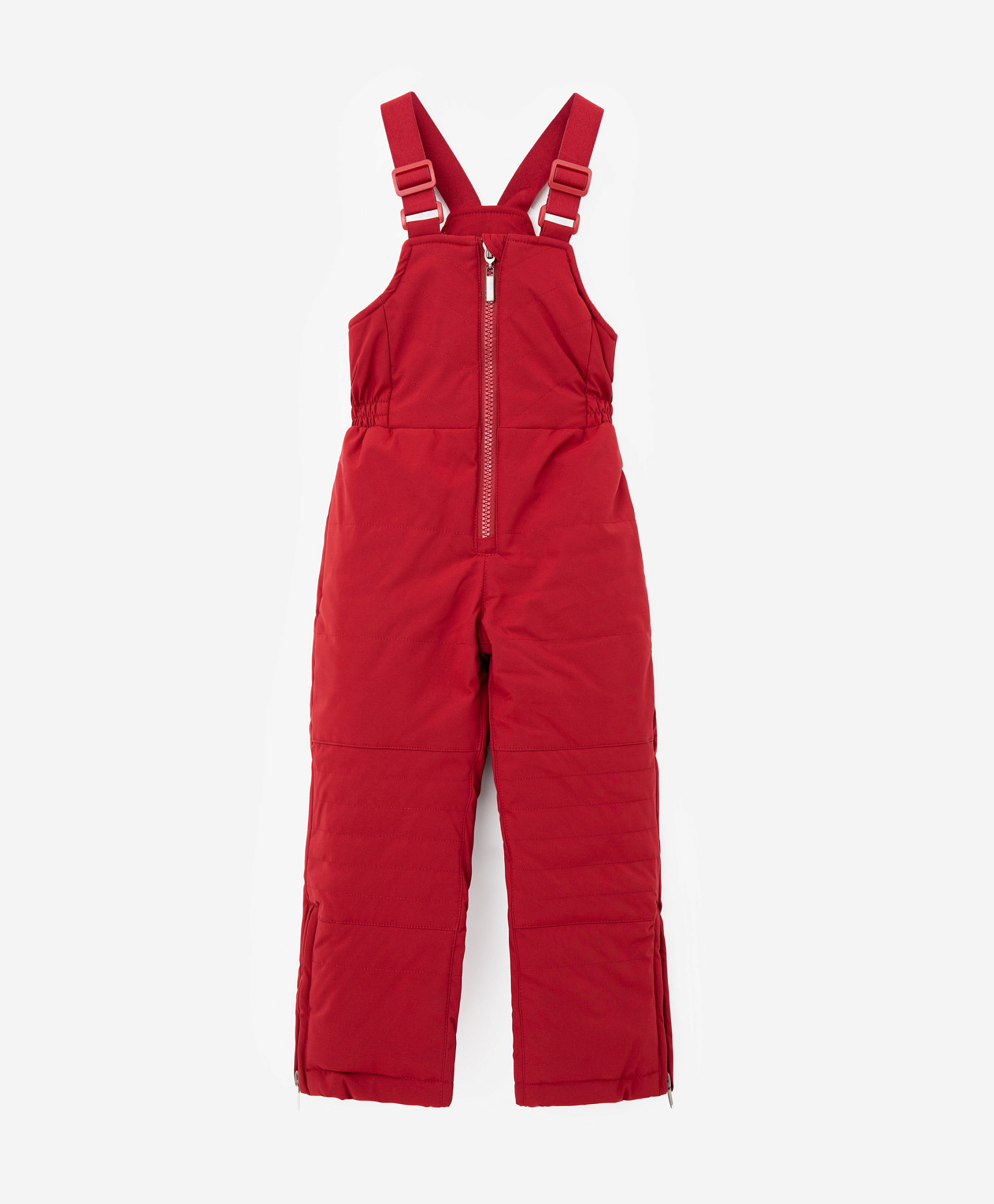 Утепленный полукомбинезон из плотной водонепроницаемой практичной плащевки с усиленной коленной зоной имеет внутренние манжеты, защищающие от попадания снега внутрь, и молнии в боковых швах, позволяющие регулировать объем брюк в зависимости от типа обуви.
