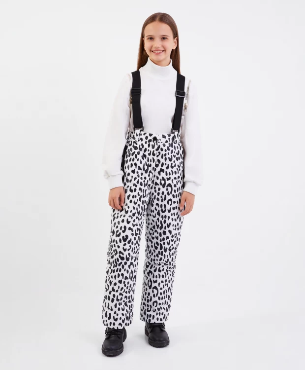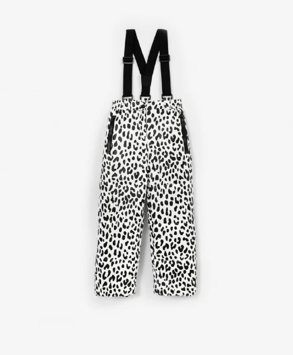 Теплый полукомбинезон с леопардовым рисунком придаст зимнему прогулочному гардеробу остроту и экстравагантность. Очень удобный, уютный, комфортный, полукомбинезон обладает всем необходимым функционалом для продолжительной прогулки. Снегозащитные внутренние манжеты, молнии на задних половинках брюк для регулировки объема изделия внизу, удобные карманы на тракторных молниях, съемные регулирующиеся лямки делают комбинезон продуманным, добротным, практичным.