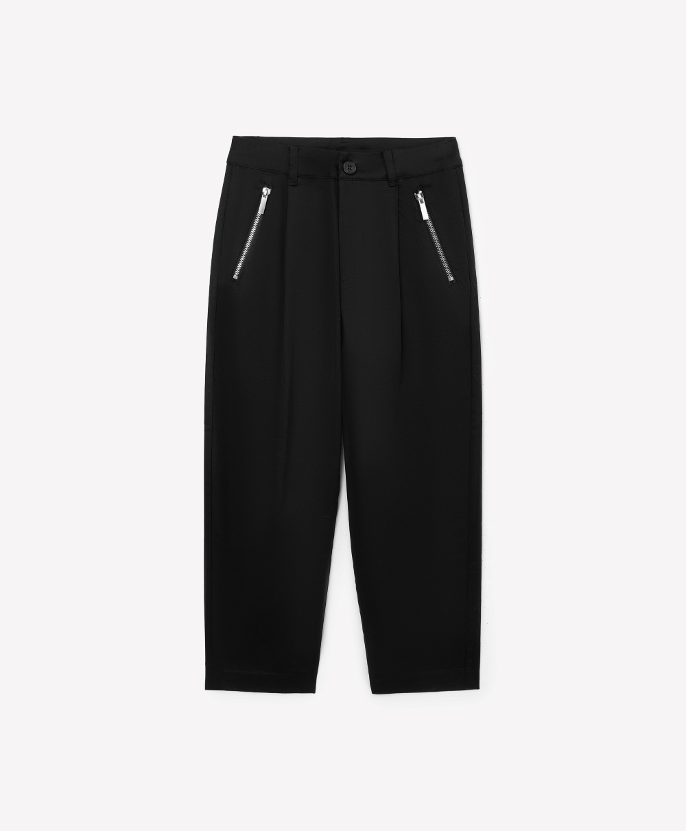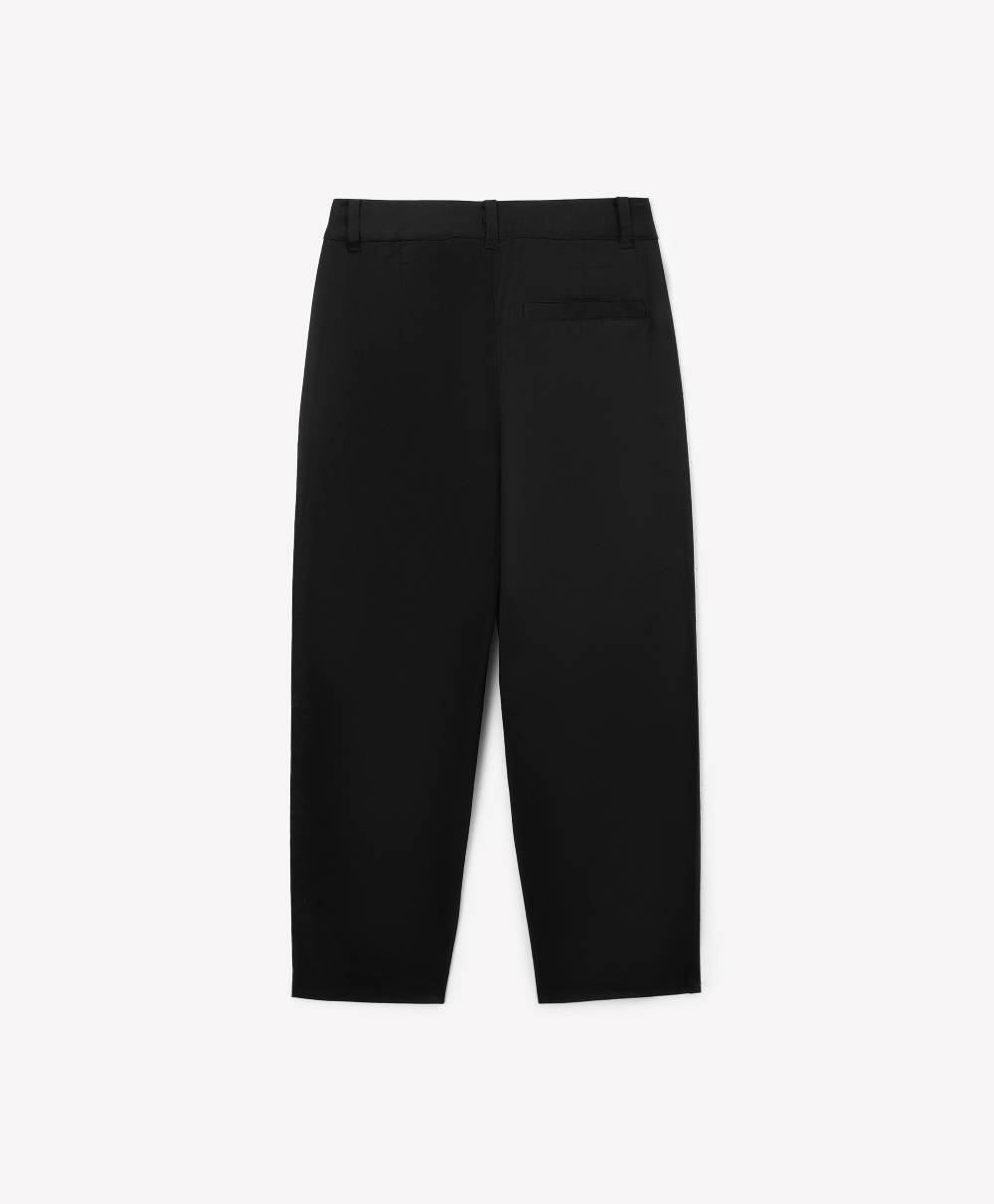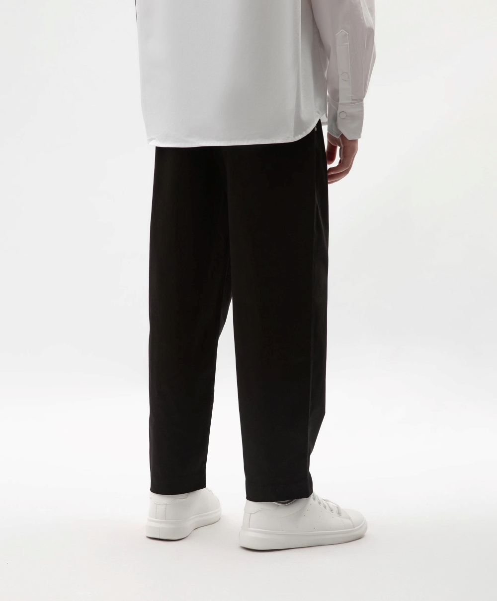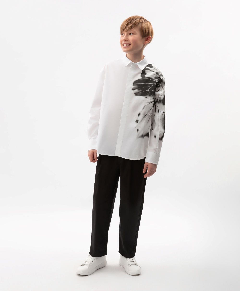 Неотъемлемая составляющая нарядных и повседневных образов — черные зауженные брюки из твила. Модная форма модели создана благодаря защипам в районе пояса. Материал обладает прекрасной формоустойчивостью, гигроскопичностью, прост в уходе и эксплуатации. Брюки застёгиваются на молнию и пуговицу. Изделие гармонично сочетается с белой текстильной рубашкой 125GPBC2301 из коллекции "Лемонграсс" и не только.