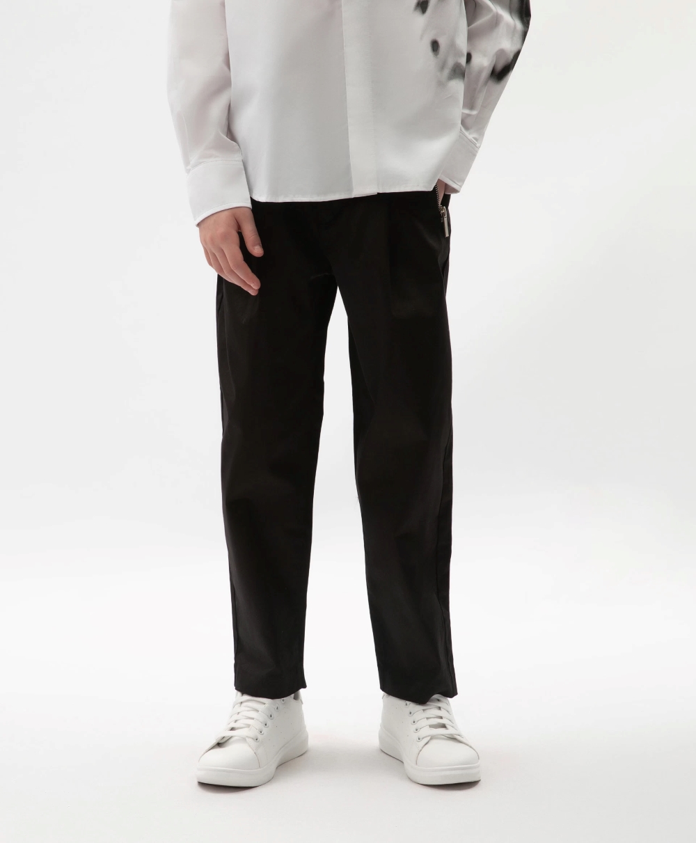 Брюки для мальчика зауженные к низу чёрные из твила Артикул: 125GPBC6301
