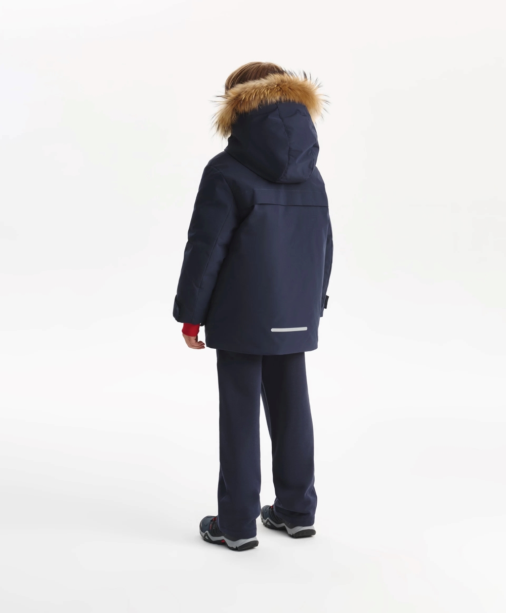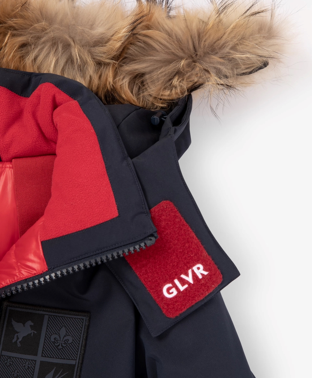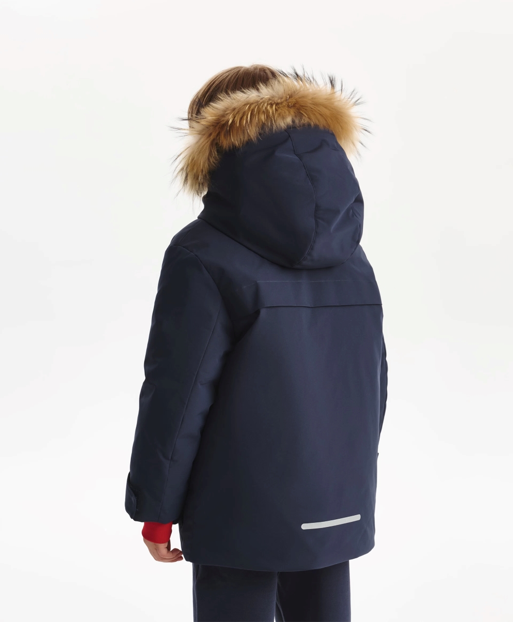 Синяя зимняя куртка выглядит стильно, красиво, достойно. Выполненная из плотной матовой плащовки на тонкой, стеганой вместе с утеплителем, контрастной плащевой подкладке, она объединила элегантность классики и динамику спорта. Лаконичный дизайн не предполагает сложных отделок и, тем не менее, в строгой благородной синей куртке нашлось место и цветовой игре, и фактурному разнообразию, и ярким акцентам. Блестящая стеганая подкладка придает куртке премиальный вид. Глубокий капюшон с отстегивающимся мехом енота, объемные накладные карманы с клапанами, паты на рукавах делают куртку удобной и практичной, способной выдержать любые погодные испытания. Кроме того, куртка обладает приятными нюансами в дизайне, отделке, оформлении, усиливающими эмоциональное впечатление от модели. Внутренняя часть стойки из флиса с плащевой обтачкой по краю создает приятный тактильный контакт с кожей.