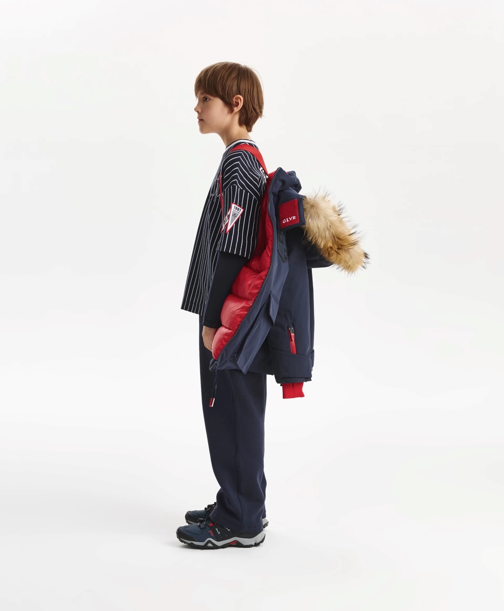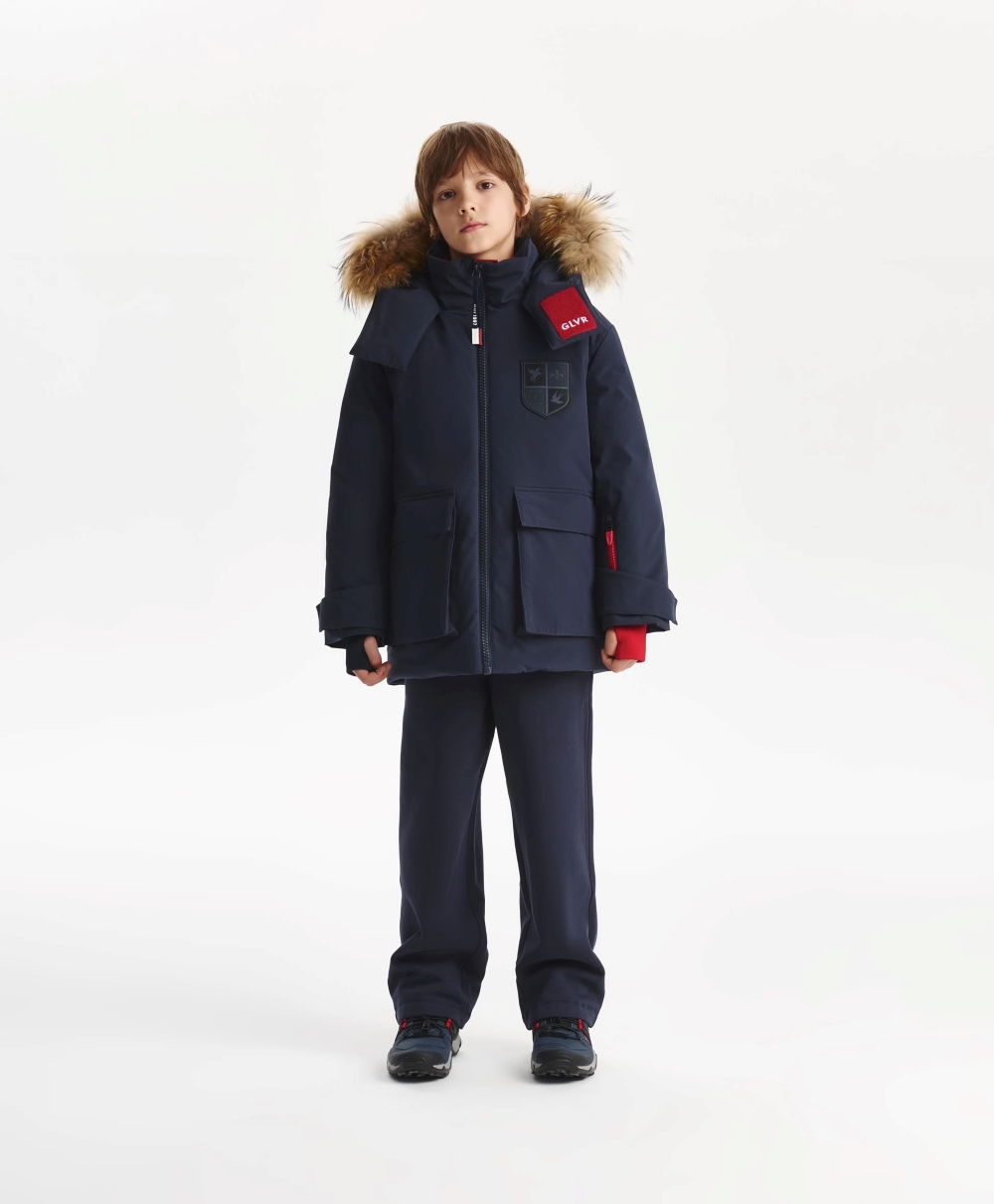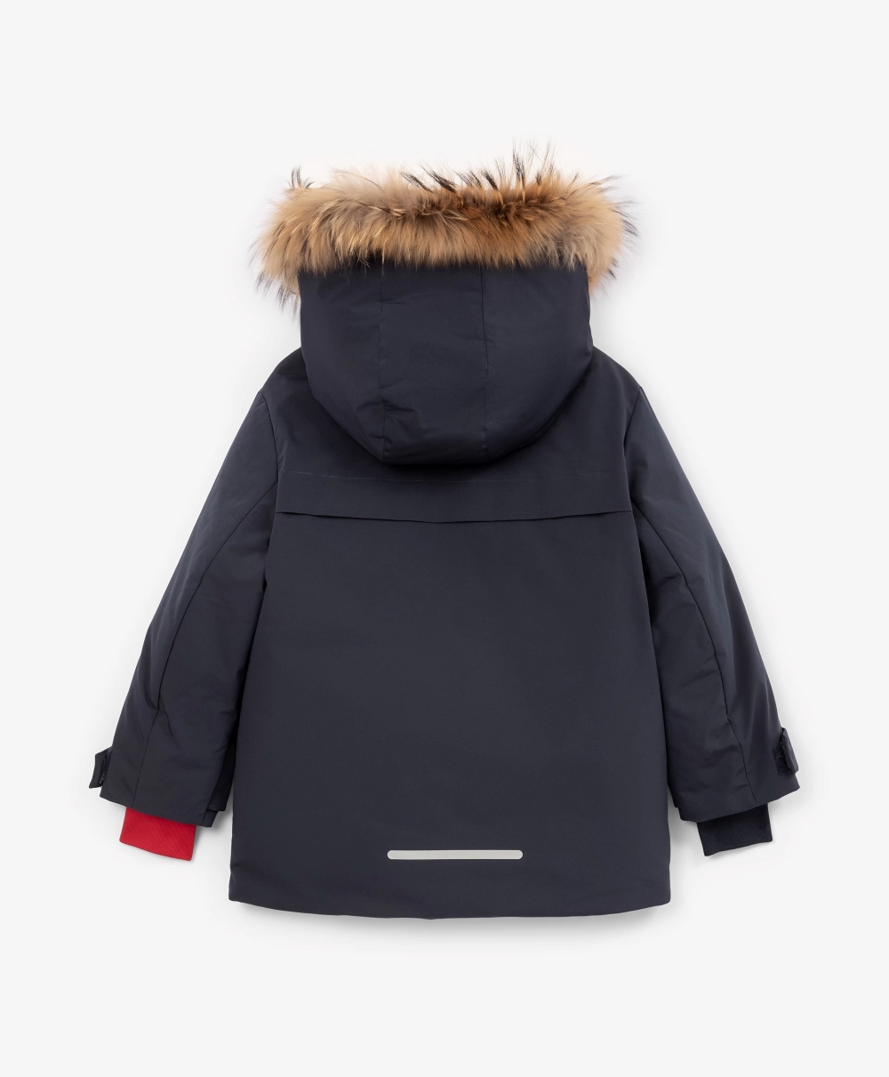 Синяя зимняя куртка выглядит стильно, красиво, достойно. Выполненная из плотной матовой плащовки на тонкой, стеганой вместе с утеплителем, контрастной плащевой подкладке, она объединила элегантность классики и динамику спорта. Лаконичный дизайн не предполагает сложных отделок и, тем не менее, в строгой благородной синей куртке нашлось место и цветовой игре, и фактурному разнообразию, и ярким акцентам. Блестящая стеганая подкладка придает куртке премиальный вид. Глубокий капюшон с отстегивающимся мехом енота, объемные накладные карманы с клапанами, паты на рукавах делают куртку удобной и практичной, способной выдержать любые погодные испытания. Кроме того, куртка обладает приятными нюансами в дизайне, отделке, оформлении, усиливающими эмоциональное впечатление от модели. Внутренняя часть стойки из флиса с плащевой обтачкой по краю создает приятный тактильный контакт с кожей.