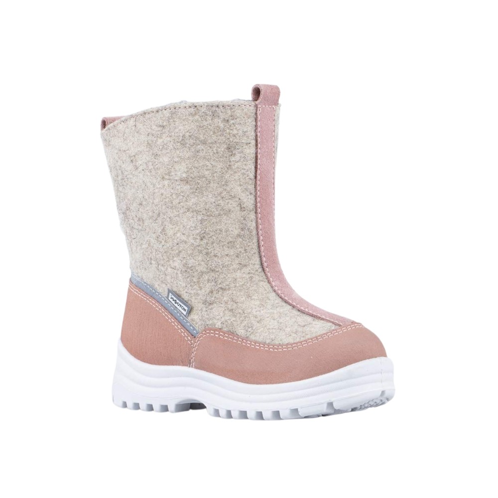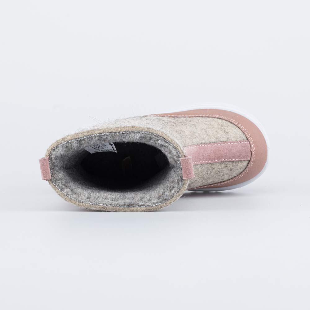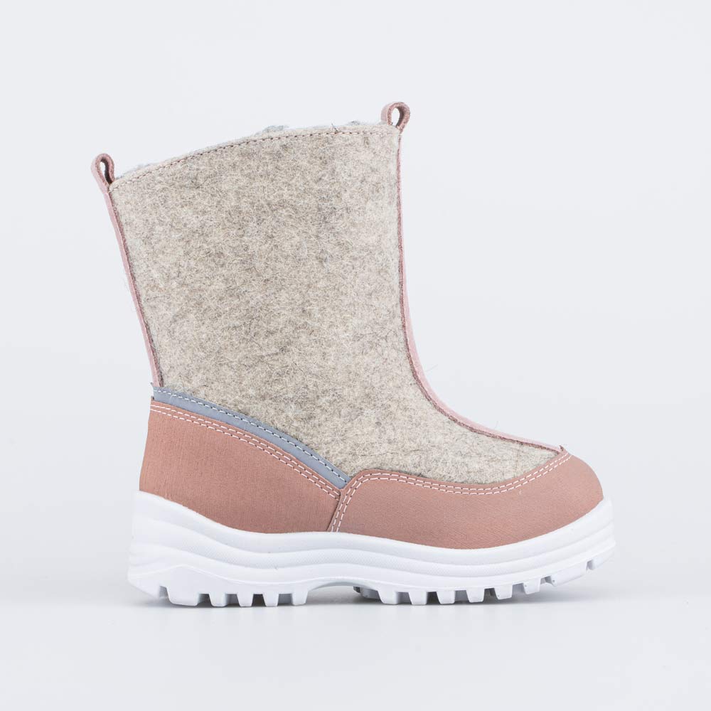 Детские сапожки-валенки выполнены из бежевого войлока.