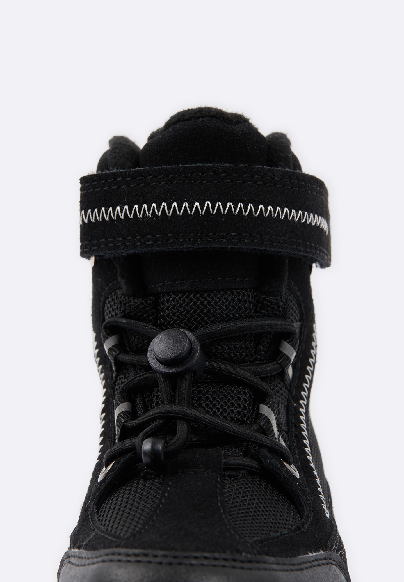 Зимние ботинки Carlisle из водонепроницаемого дышащего материала с текстильным подкладом.  Фиксацию обеспечивают эластичная шнуровка с регулировкой и ремешок на липучке в зоне щиколотки, что позволяет отрегулировать подъем. Водонепроницаемый материал позволяет прыгать по лужам и не бояться, что влага попадет внутрь. Задник держит форму и фиксирует пятку. Съемные стельки позволят с легкостью за ними ухаживать, а также заменить на ортопедические. Легкая и гибкая тракторная подошва из резины с глубоким протектором обеспечивает надежное сцепление с поверхностью.